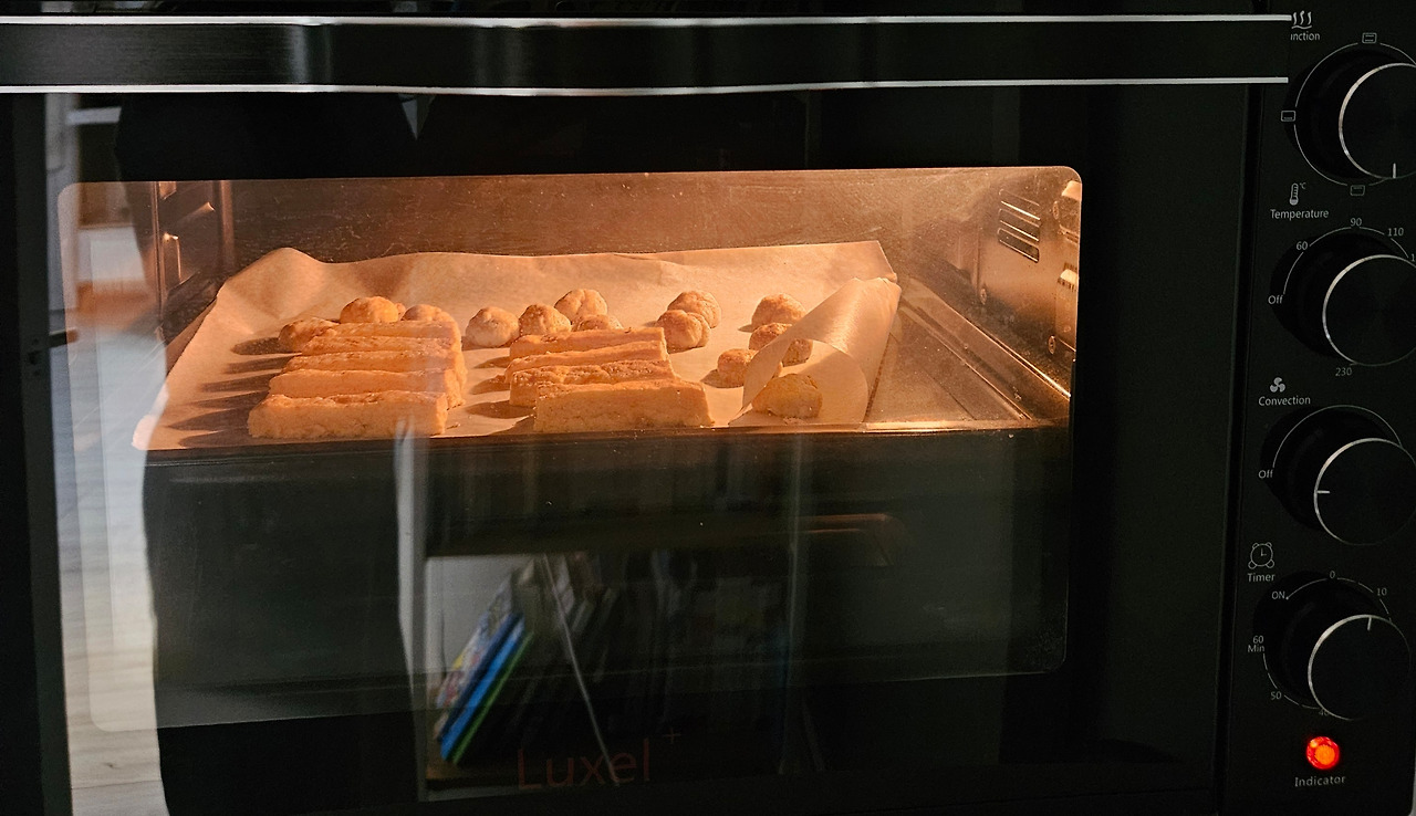 그렇게 저녁시간 내내 주방에서 버터, 밀가루, 달걀 개량해서 녹이고 반죽하고 섞고.