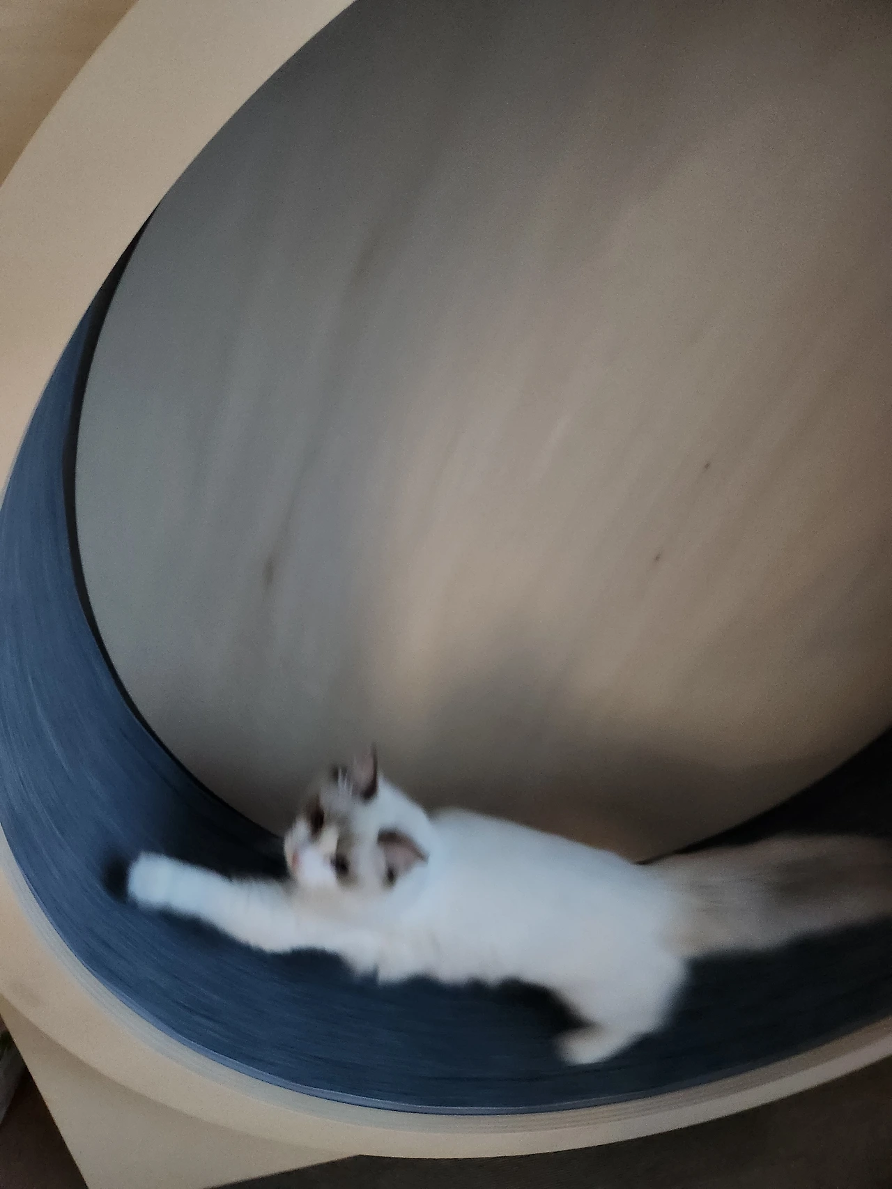 나를 부르는 고양이를 따라 작은 방 캣휠 앞에 선다. 고양이는 캣휠에 올라 겅중겅중 뛴다. 그 옆에서 나는 장단을 맞춘다.