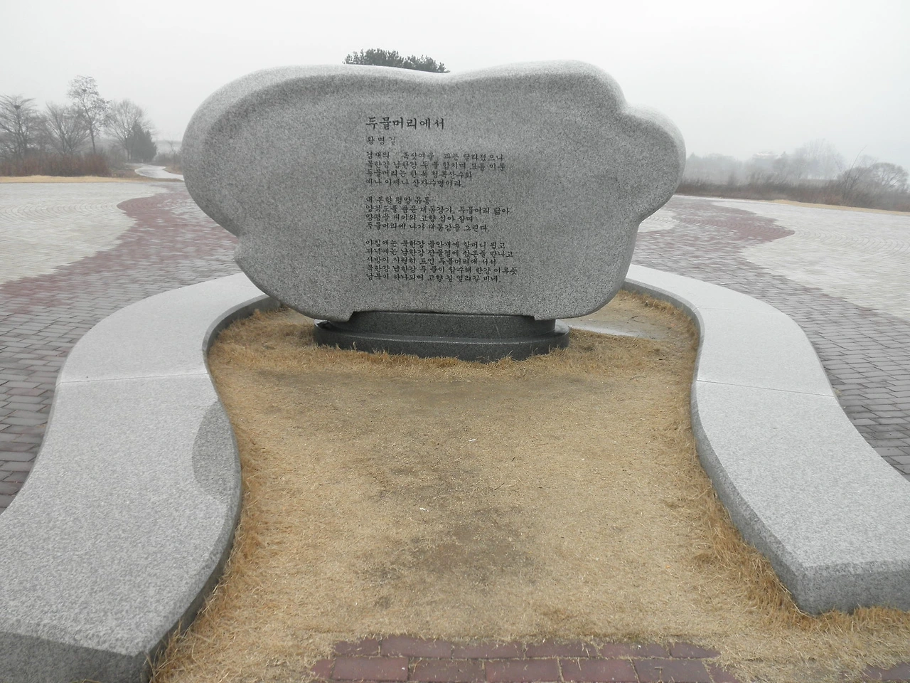 앞쪽에는 “남한강 북한강 하나 된 두물머리, 겨레의 기적이 숨 쉬는 우리의 한강”이라 적혀 있고, 뒤쪽에는 황명걸시인이 지은 “두물머리에서”란 시가 적혀 있다. 천천히 그 시를 한 자 한 자 음미해 본다.