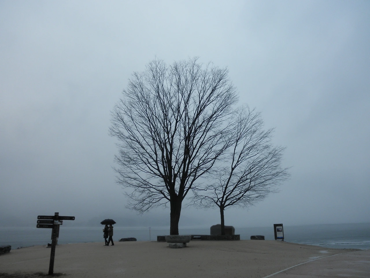 두물머리는 예전에 사진 찍으러 몇 번 와 봤지만 계절에 따라, 날씨에 따라 참 느낌이 다르다. 오늘은 날씨도 흐리고 강변에는 안개가 자욱하여 한층 운치를 더한다. 데이트를 즐기는 커플들과, 곳곳에 설치된 포토존에서 사진을 찍는 사람들도 눈에 띈다.