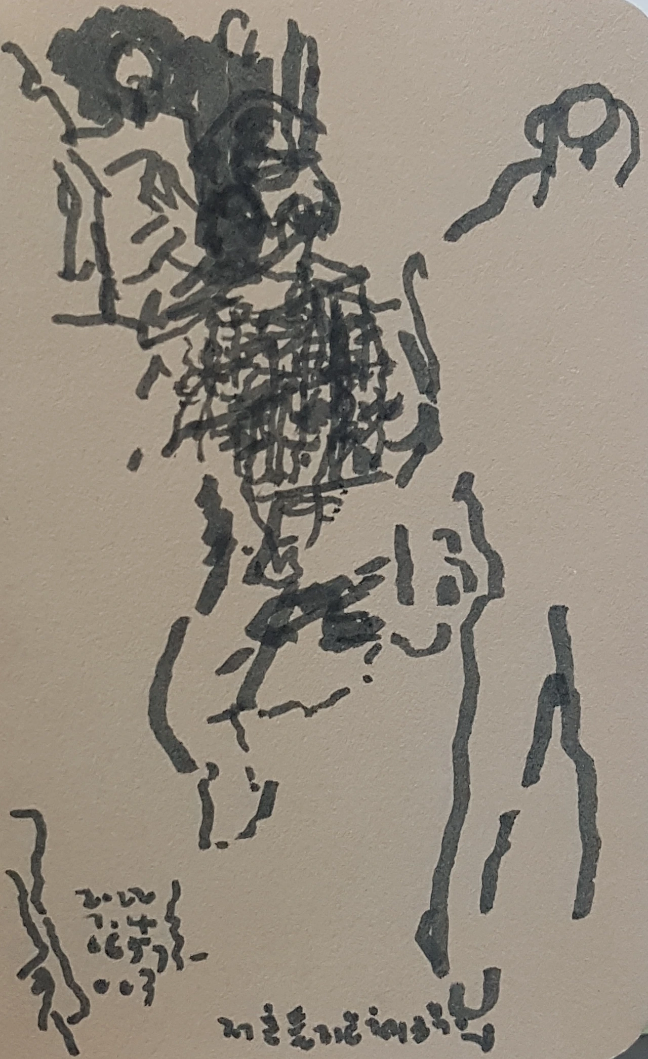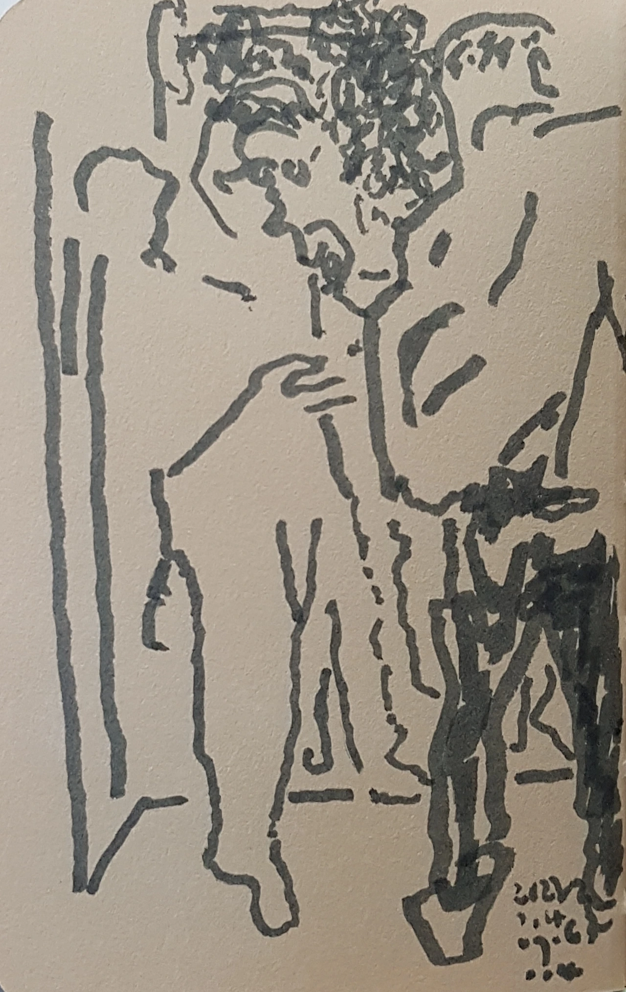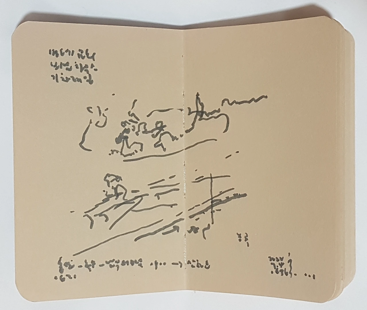 노인석의 중늙은이에게 눈길이 머문다. ''창에 비친 네가 저 흔들리는 체크무늬에서 눈을 떼지 못하는고나.'' (06:57)