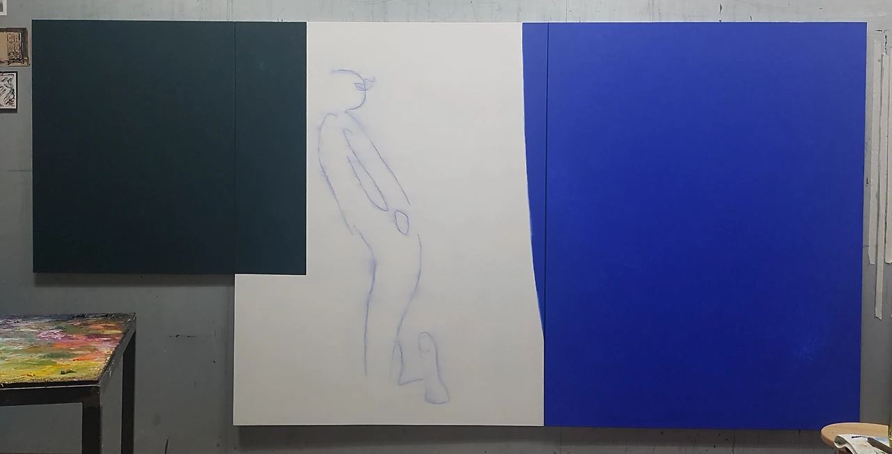 3호선 역에서, 145.5x 296.9cm (변형), acrylic on linen