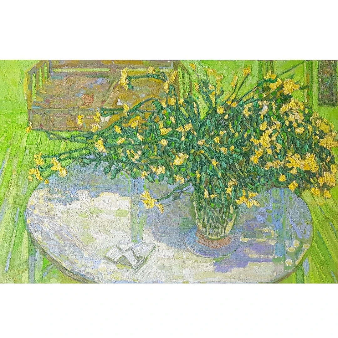 A paper airplane that could not fly and autume wild chrysanthemums in a vase_oil on linen_60.6x90.9cm_2015-22