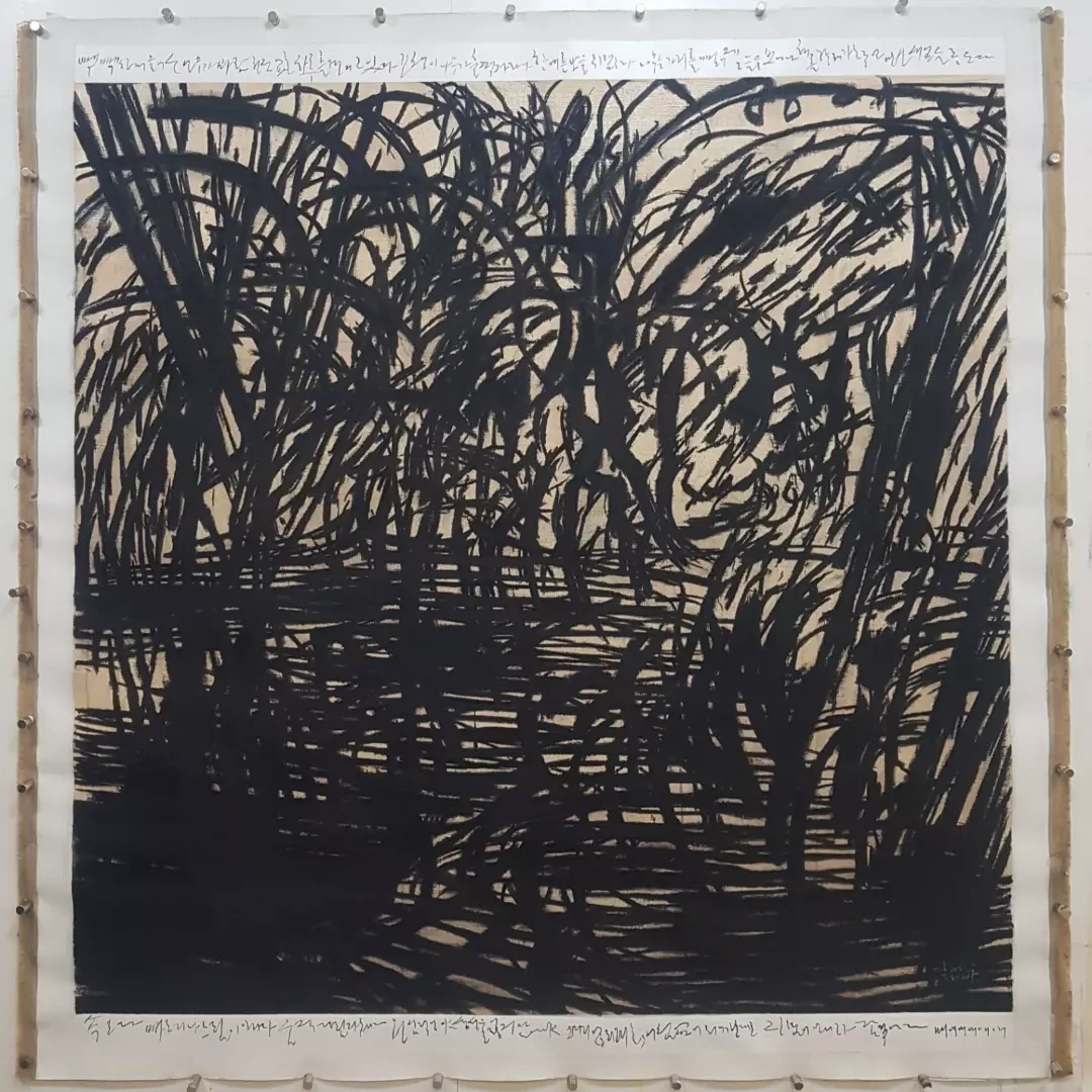 ''속도다. 빠르거나 느림이 아니다. 움직거림 자체다. 원심적인 야생성을 잃지 말아야. 그리지 않되 그리는, 거침없이 되어가는 대로. 관념이 아니라 감각이다.''