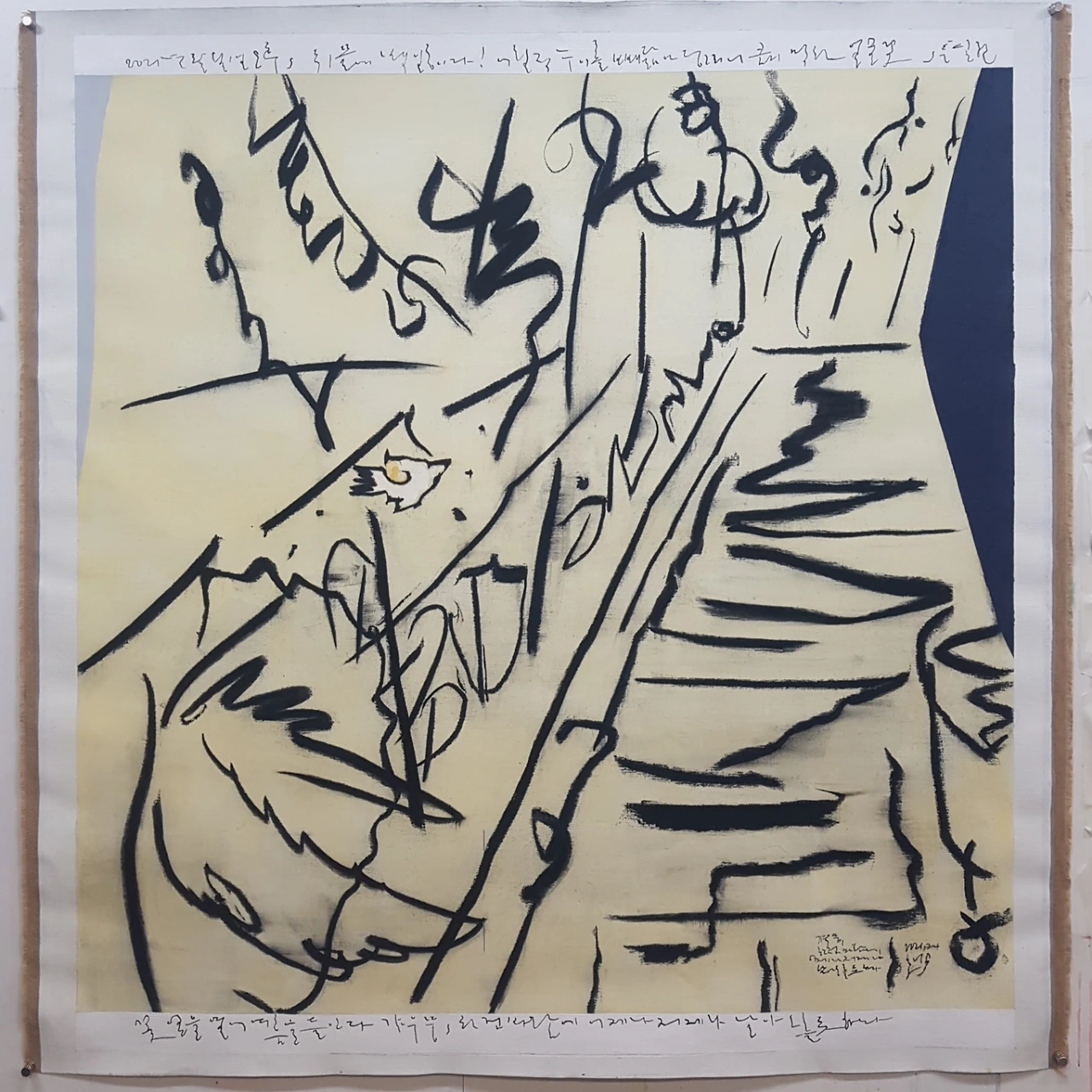 갸우뚱, 한 점 바람에_charcoal, acrylic on linen_162.2x150cm_2021, 24