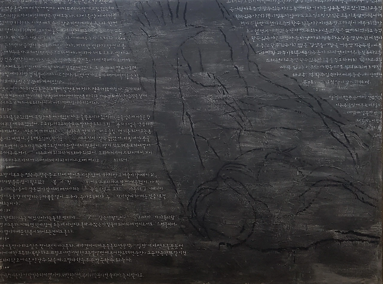 그러나 그것이 어떻게 가능한가_oil pastel, acrylic on cotten_193.9x259.1cm_2024