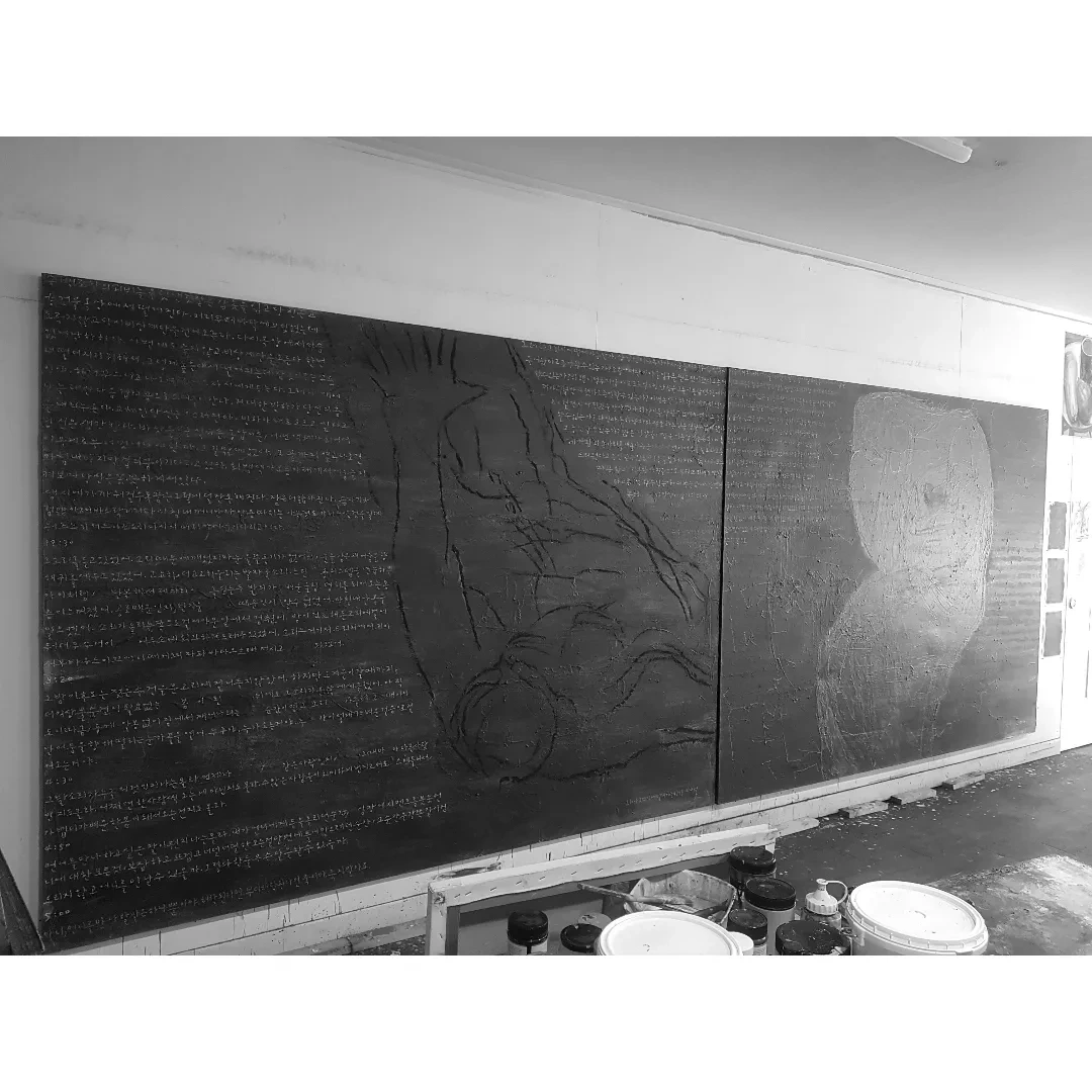 엄마아_oil pastel, acrylic on cotten_193.9x 259.1cm_2024