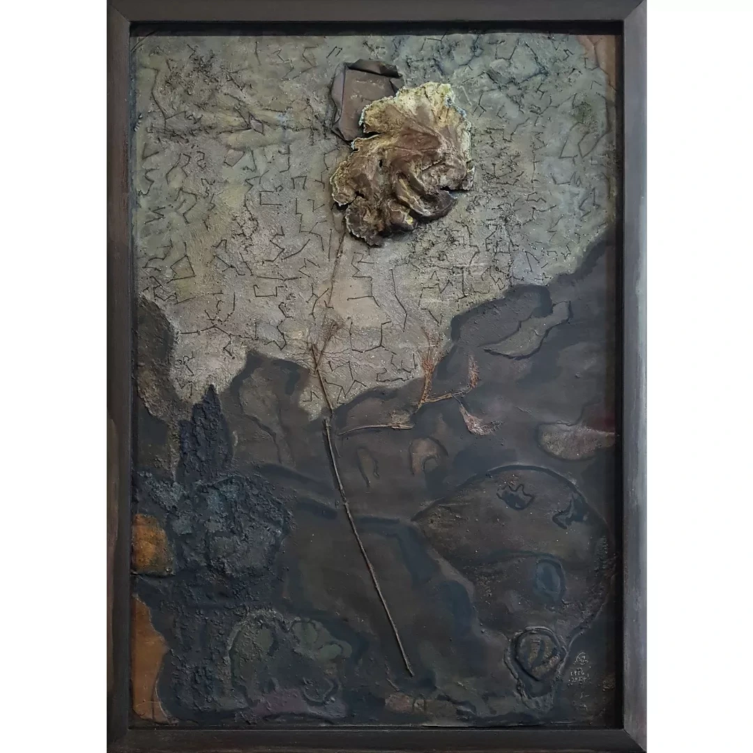 지난달 컬렉터가 국현에 기증한 '장군의 초상'(1993년)과 같은 시기에 그린 그림을 꺼내 본다. '1996, 넋'이라고 쓰여 있다. 튜브물감을 배제하고 자연의 물성을 그대로 차용하려 했던 의도가 기억난다. 동판, 부조, 흙, 마른 갈대, 쇳가루 등등. 그새 30년 가까이 지났다. 까맣게 잊고 있었던 그림인데 시절이 수상하기는 그때나 지금이나 매한가지다. 조심스레 덧그린다. 륮
