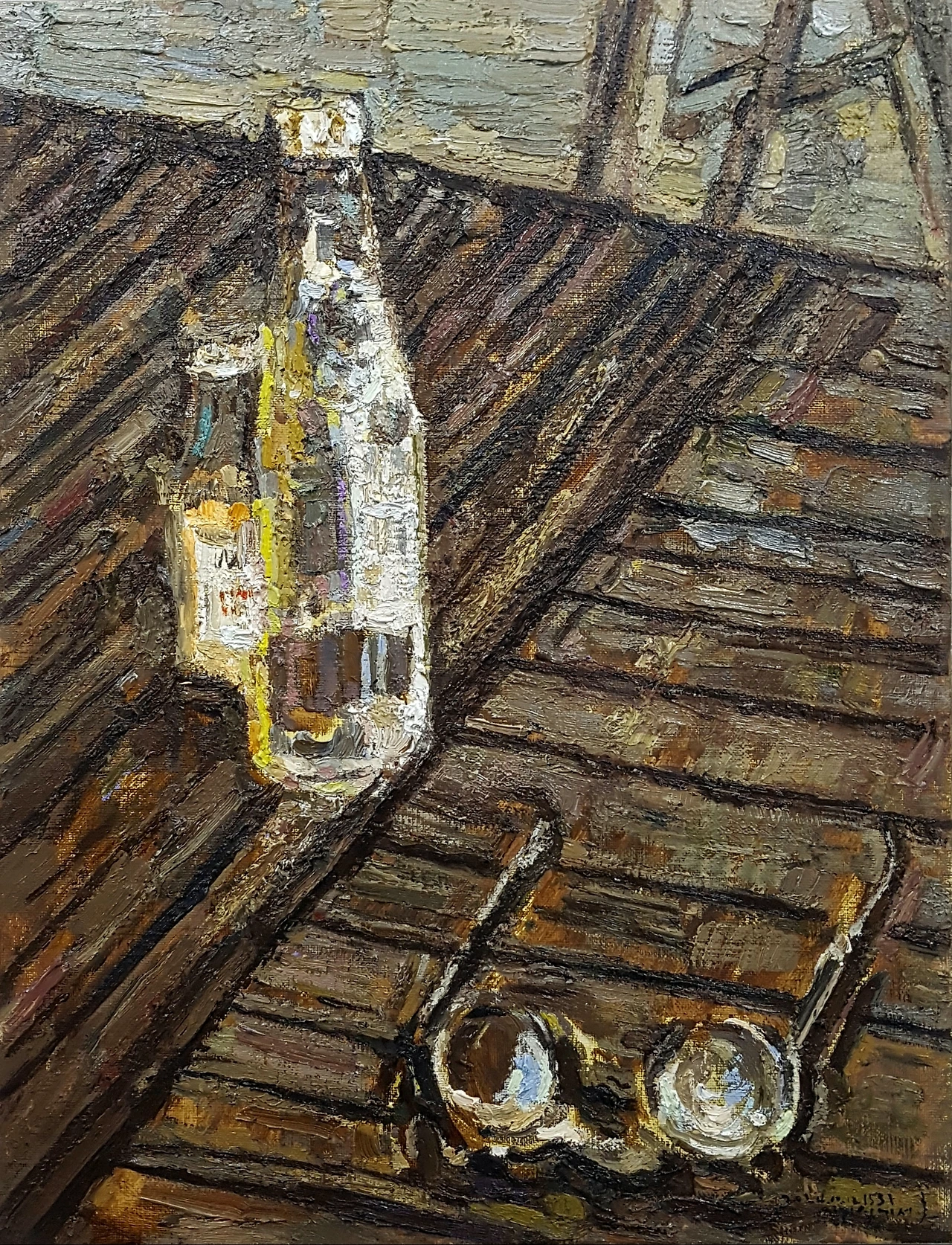 지난해 가을 수업 중에 시연한 그림을 마무리한다. 이케 분명한 전략과 판단에 따라 붓을 놀린 적이 얼마나 있었나 돌이켜본다. 작업실에서 갈팡질팡 주저하며 중얼중얼 되뇌기를 반복하는 내가 보인다. 다른 사람과 소통하며 그릴 때와 자신과 대화하며 그릴 때가 다르다. 거침없는 던짐이거나 머뭇거리는 망설임의 붓질이 대비된다. 기운이 활달한데 깊이가 없고 시간의 두께가 촘촘한데 답답하다. 동전의 앞면과 뒷면을 동시에 볼 수 없지만 함께 하는 것처럼 공존하는 두 모습이다. 륮