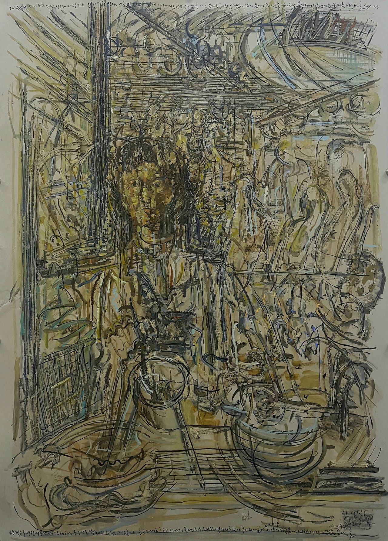 그녀를 그린다. 어느덧 가장 익숙해진 인물이다. 동시에 낯설다. 너무 가까이 있어 가시거리를 확보할 수 없을 때 그 존재는 느낌적일 수밖에 없다. 몸에서 분리된 몸을 볼 때처럼 물끄러미 보는 그녀는