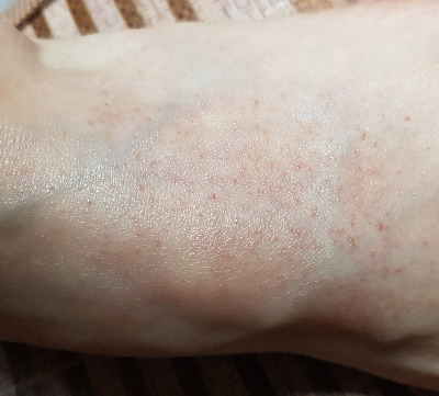 발등에 빨간 좁쌀 같은 것이 여기저기 돋아 있었던 것이다. 양쪽 발등, 발목까지도 오돌토돌하게 퍼져 있었다.