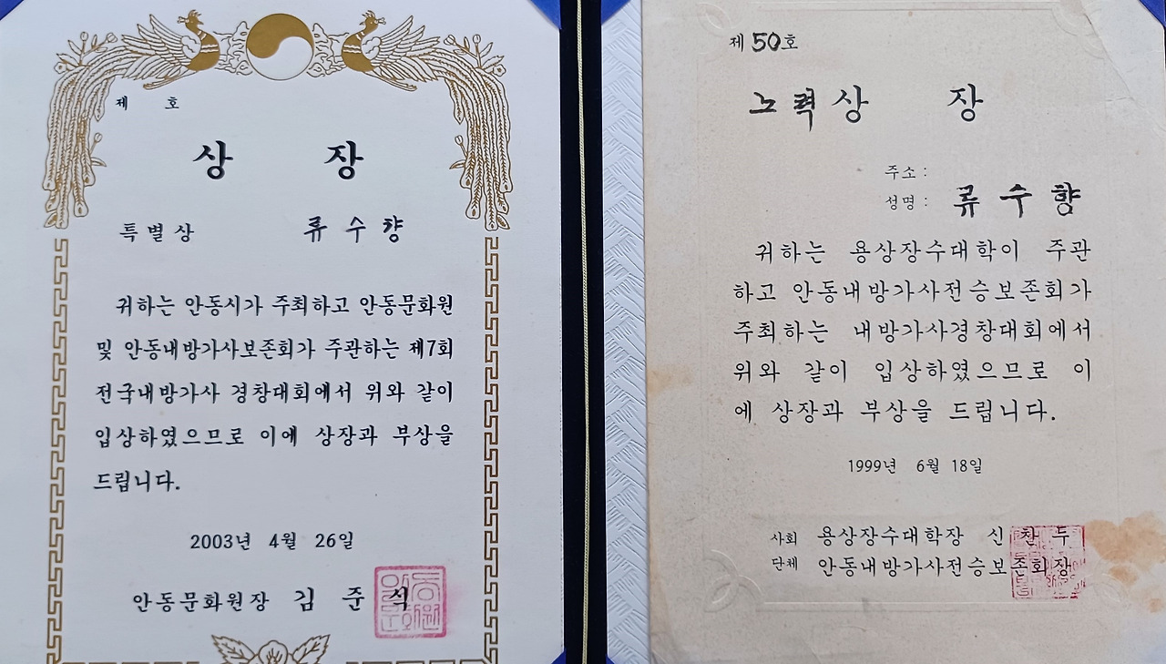 시어머니 류수향은 내방가사 전승 보존회와 연이 닿아 보존회 사무실을 수년간 다니셨다.