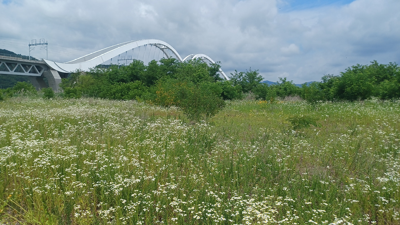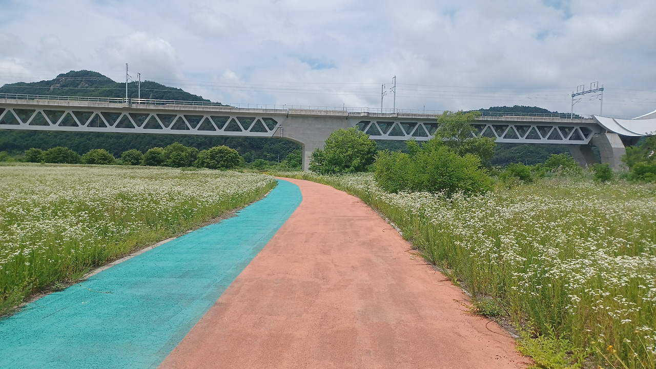 안동 낙동강 중앙선 철교 밑에도 개망초가 만발했다.
