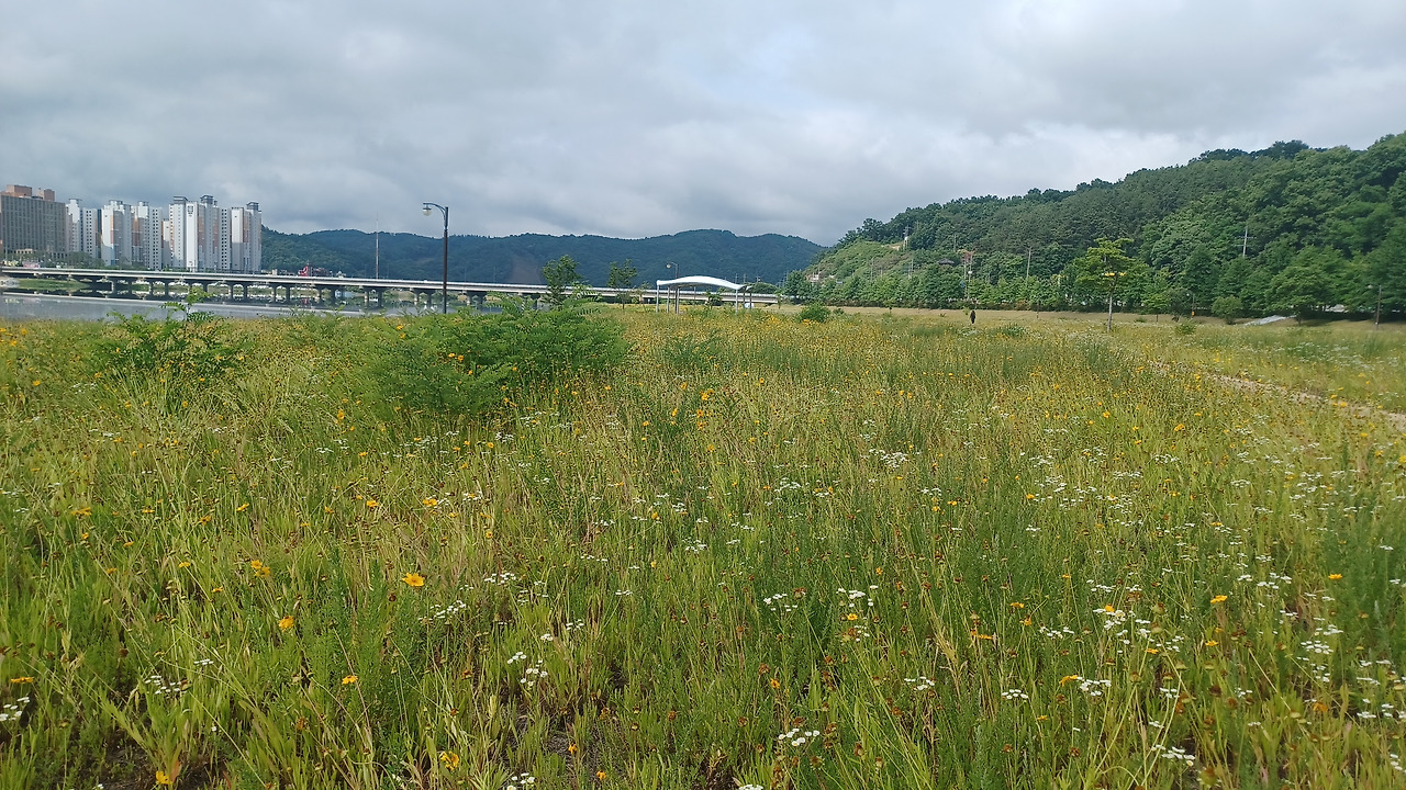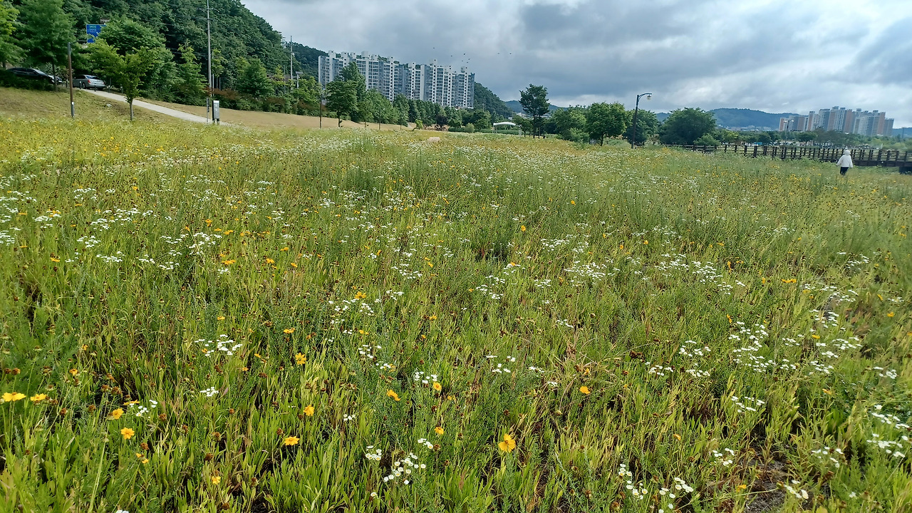 안동 낙동강의 금계국이 6월 들면서 조금씩 시들고 있다. 노란 꽃잎을 떨구고 검은 꼭지만 남았다. 그 사이로 하얗게 핀 개망초는 금계국보다 큰 키를 이용해 햇빛을 독차지하려는 듯 하늘을 향해 하늘하늘 춤을 춘다.
