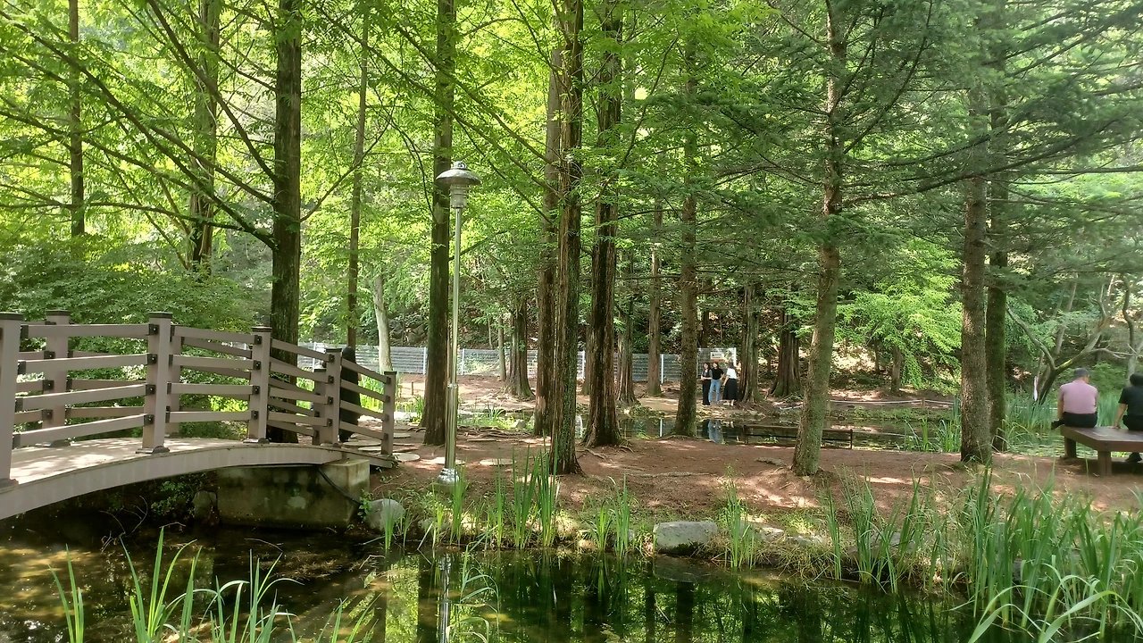 월영교에서 물길공원까지는 차로 5분 거리도 되지 않지만 공원의 존재를 알아야 들릴 수 있다. 메타세콰이어 나무 그늘 아래서 커피 한 잔을 곁들이면 여름 무더위가 말끔히 씻을 수 있다.