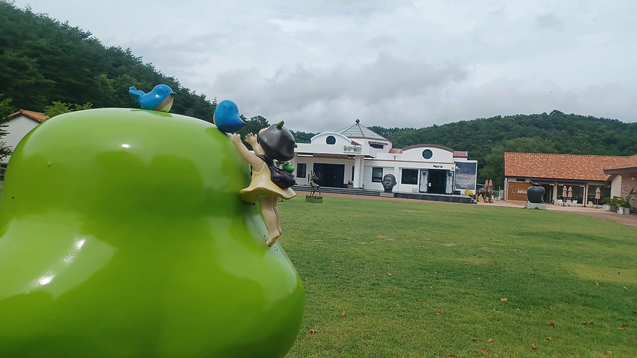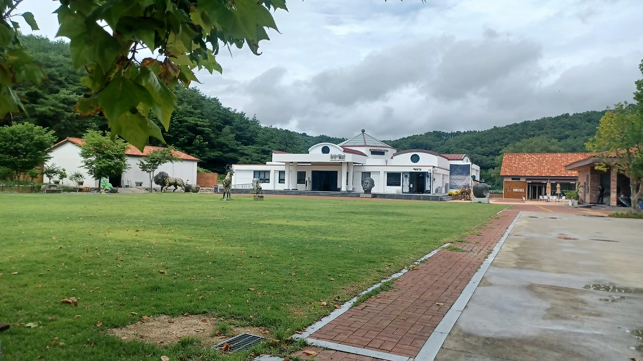 이곳은 옛날 초등학교라 운동장이 넓고, 시인이 운영하는 미술관 부설 카페여서 카페와 미술관을