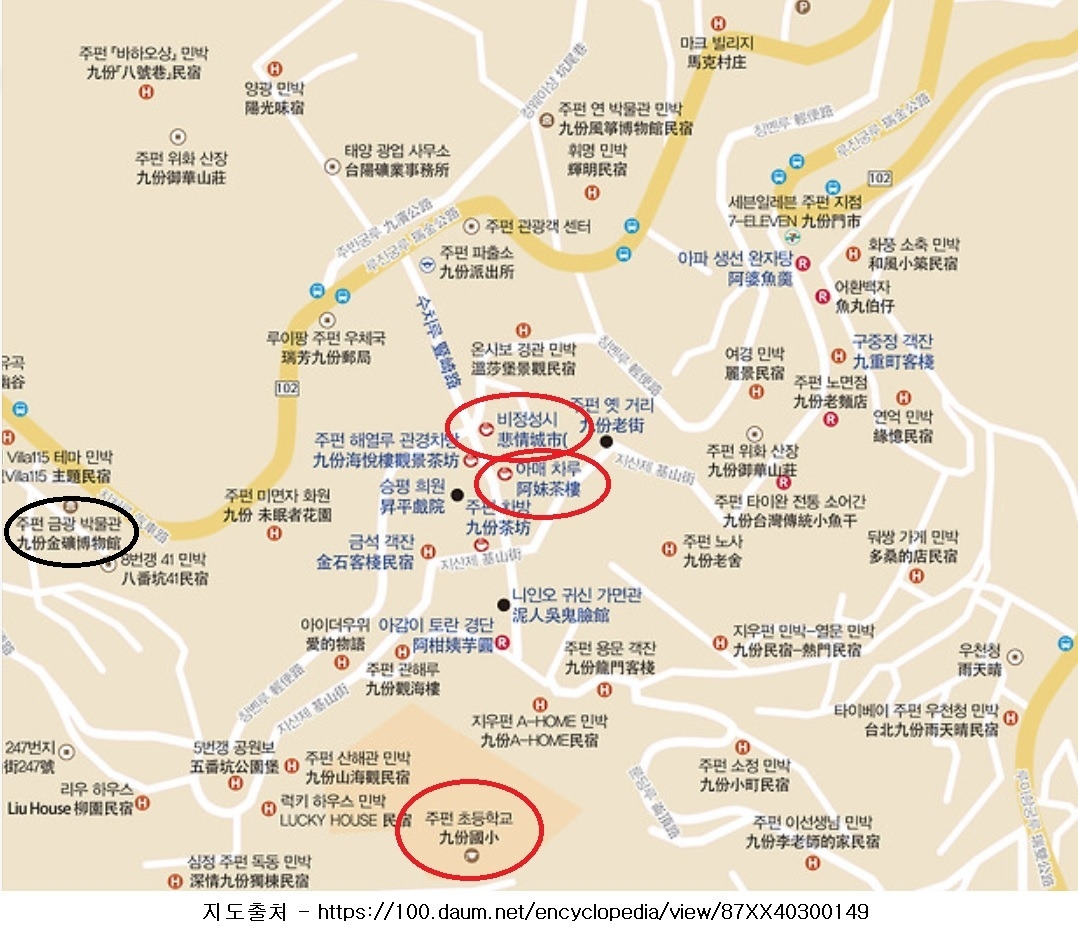 지우펀의 밤이 붉게 타오르게 하는 땔감이 되었던 진과스(金瓜石)의 금이 고갈되면서 지우개로 지워진 듯이 지우펀은 또다시 옛날 '9인분' 시절처럼 잊힌 마을이 돼버렸습니다. 산간 마을이 돼버린 지우펀의 골목골목 가가호호에 붉은 등이 다시 내걸리고 또다시 호황을 누리게 된 계기가 있었습니다. 1989년 허우샤오 센 감독의 영화 <비정성시(悲情城市)>가 베니스 국제영화제에서 대상인 황금사자상을 수상했습니다. 영화의 배경지가 바로 지우펀과 진과스였습니다. 영화를 본, 영화 소문을 들은, 덩달아서 지우펀을 찾는 사람들이 하나 둘 늘어났습니다. 나도 그 대열에 끼여 지우펀을 두 번이나 찾는 사람이 되었습니다.