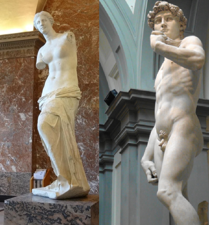 루브르박물관에 소장된 <밀로의 비너스>와 피렌체 미켈란젤로 박물관의 <다비드상>
