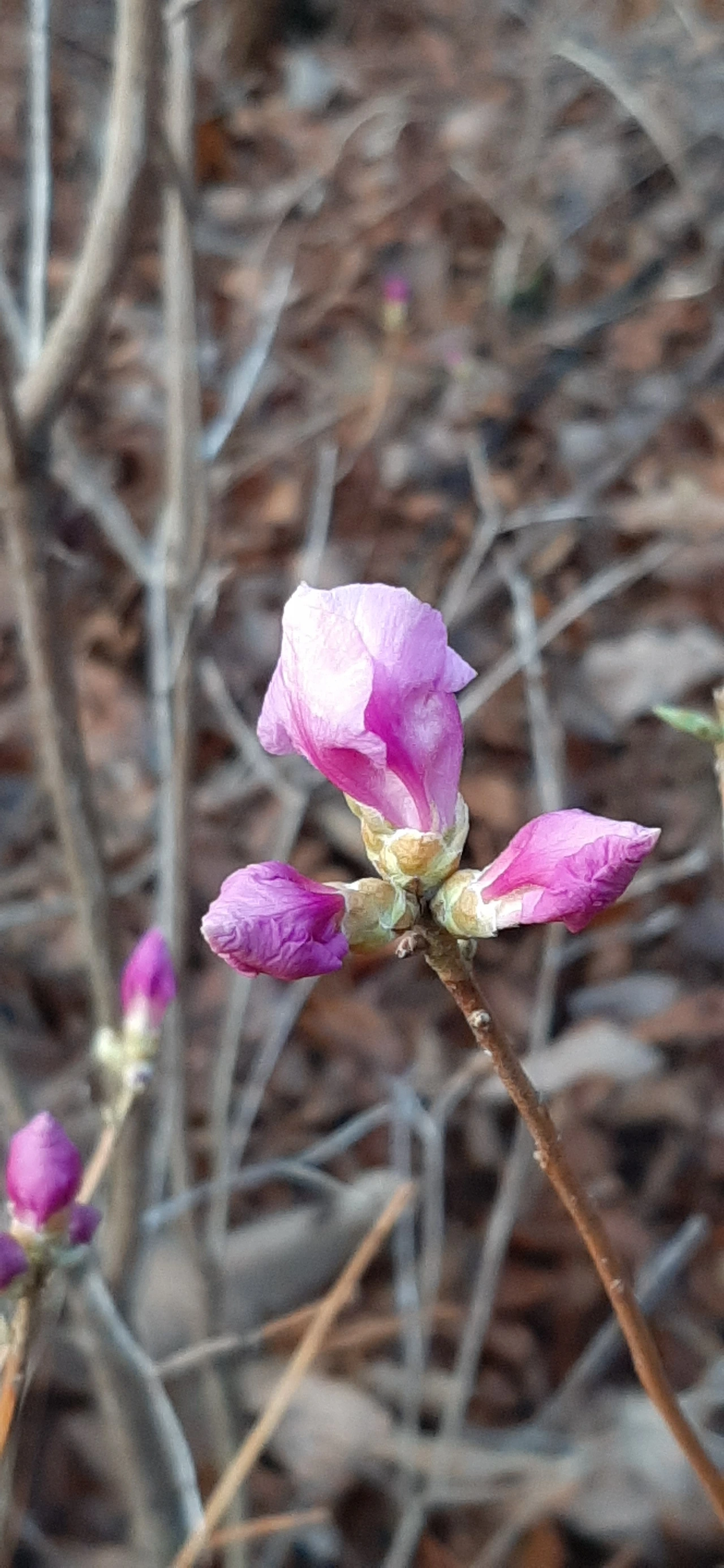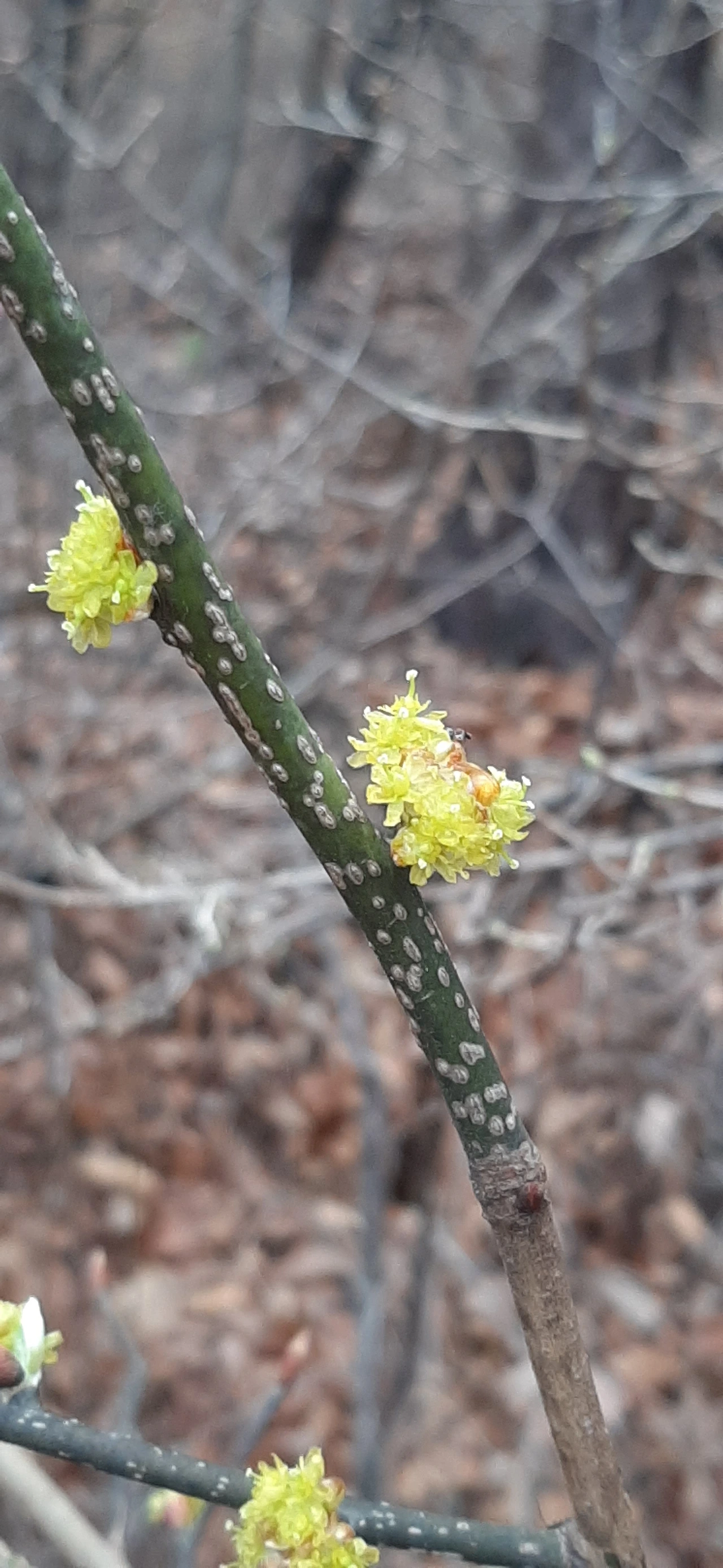 나뭇가지에 매달린 알 수 없는 곤충의 집 그리고 이제 막 자신의 존재를 알리기 시작하는 산수유와 진달래를 보면서
