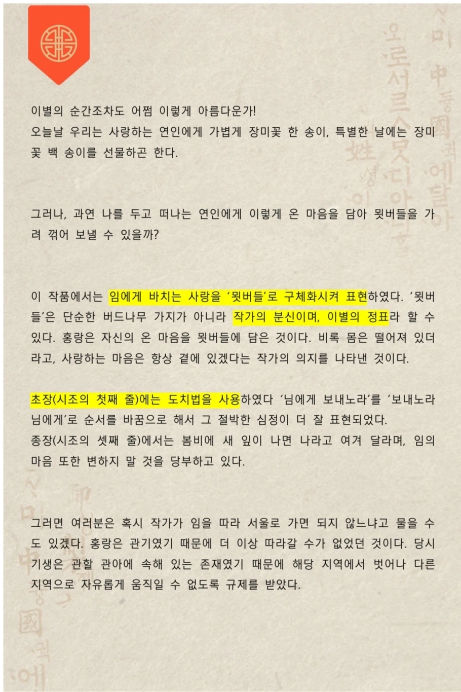 이 정도만 배경 지식을 갖추고 있어도 고전(그 중 시조)가 훨씬 쉽게 다가올 것이다.