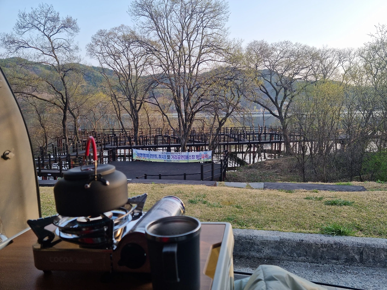 그렇게 두 시간 정도 화장실도 못 가고 있었는데 마침 한 커플이 차박을 왔다.