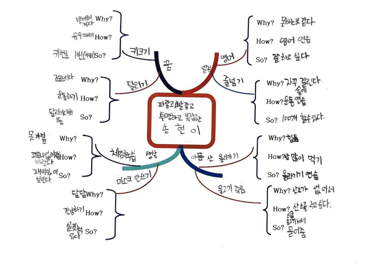 "세부 가지는 마인드맵을 그리는 목적에 따라 다 달라요."