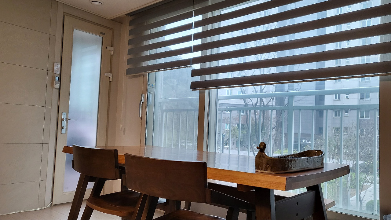 어쩔 수없이 식탁은 거실 창가로 이동,