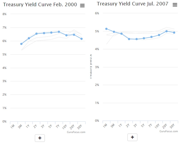 페드금리(단기금리)가 시장금리(7~10년물)보다 높은 수준이 오면, 투자보다도 현금을 들고 있는게 더 이익이 되는 시기가 오기 때문에 투자시장에서의 자금이 급속도로 빠지기 시작하게 되고,
