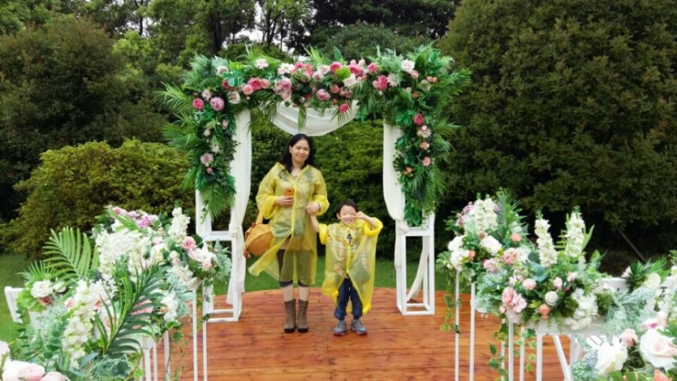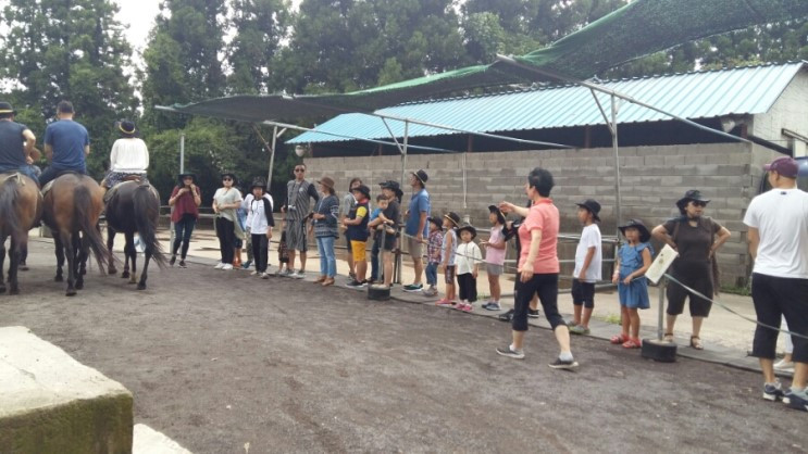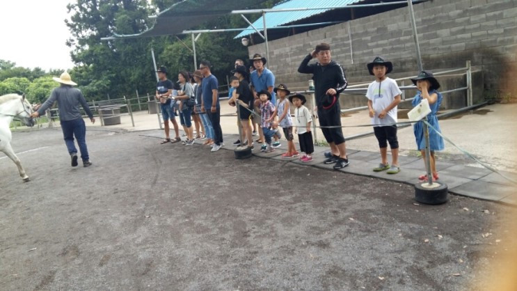 승마체험을 마치자 갑자기 소나기가 쏟아지기 시작했다. 날이 더워서인지 쏟아지는 빗줄기가 반갑다가도 또한 다음 코스 일정에 지정이 없을까 살짝 걱정이 되는 것이다. 하지만... 다음코스에 도착하자 신기하게 빗줄기가 멈췄다. 다행이다~ 싶었지만 그래도 혹시나 하는 마음에 우린 우비를 챙겨 입었다.