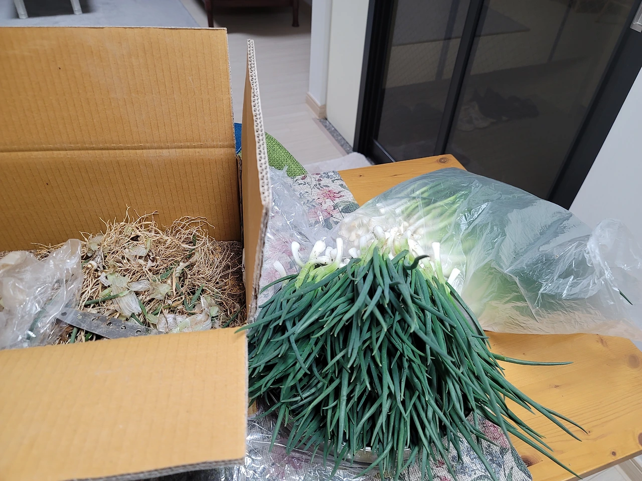 더 이상 사양도 못하고 얼결에 잘 먹겠다고 인사를 하고 쪽파 한 박스를 싣고 집으로 돌아왔다.