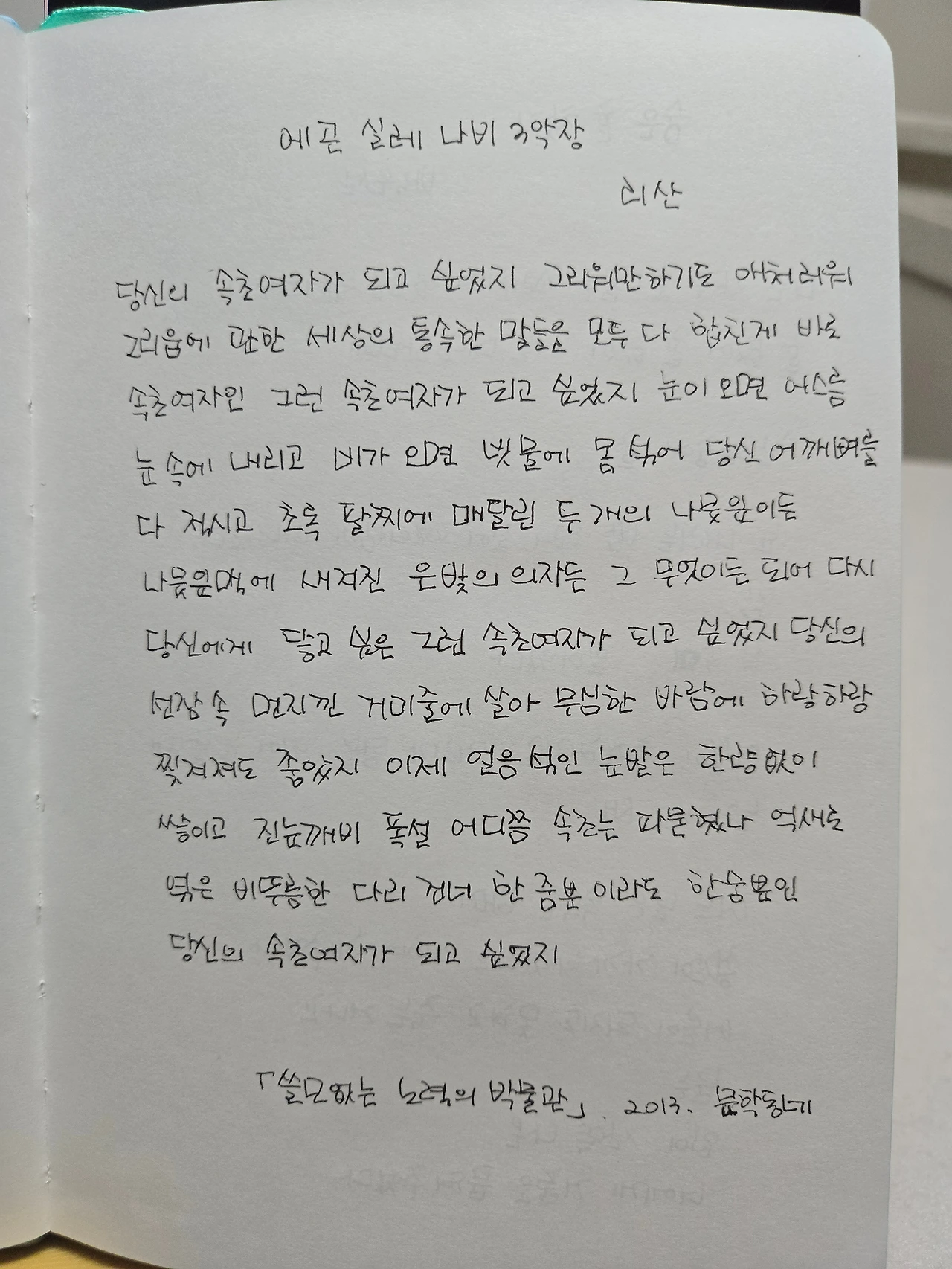 '그리움에 관한 세상의 통속한 말들을 모두 합친게 속초여자인 그런 속초여자'