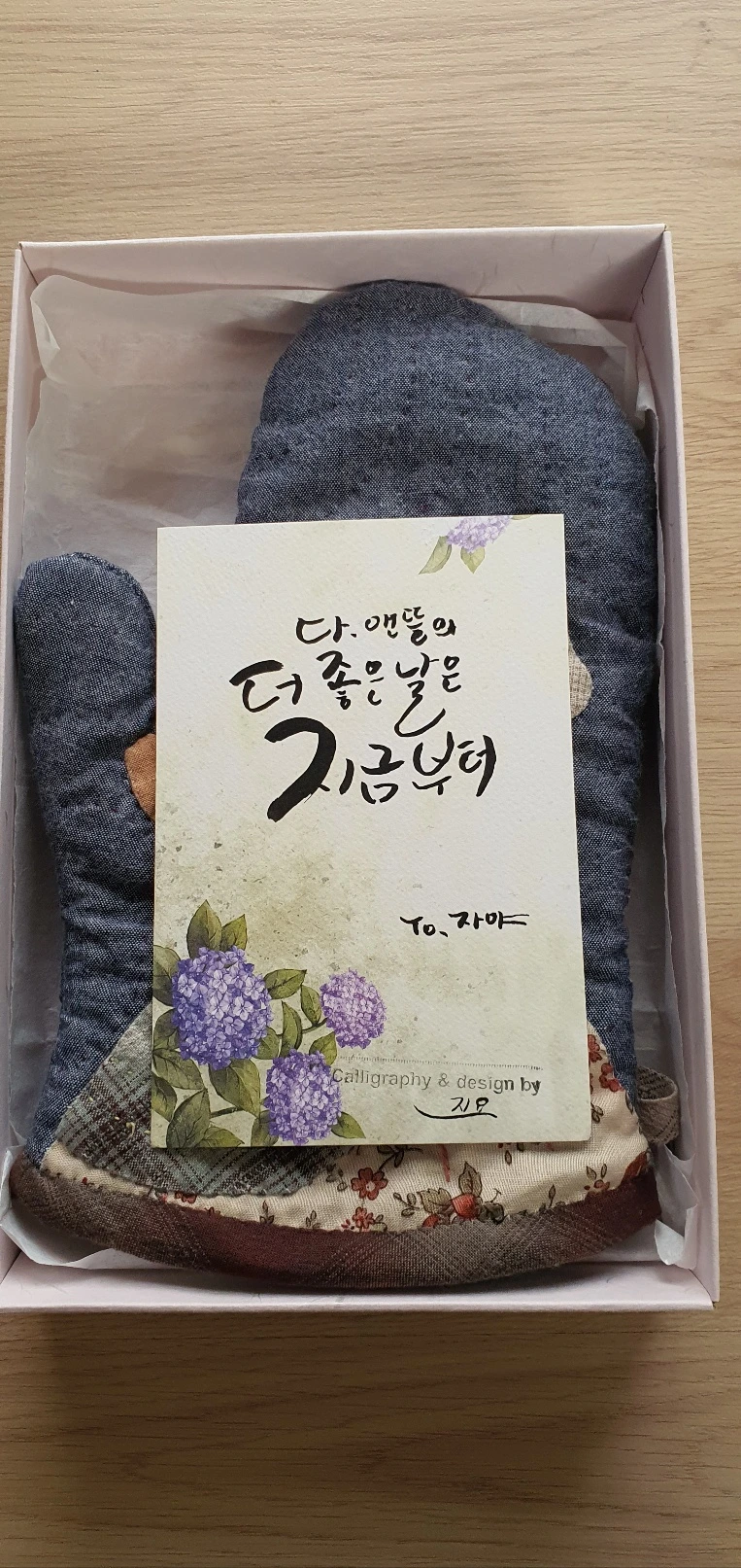 변시인이 놀막 이름을 지어주고 솜씨 좋은 지요 시인이 빵굽는 아줌마 캐릭터로 멋진 주방장갑을 만들어 주었다. 딸들이 이모들이랑 홈카페를 즐기라고 커피머신도 보내주었다.