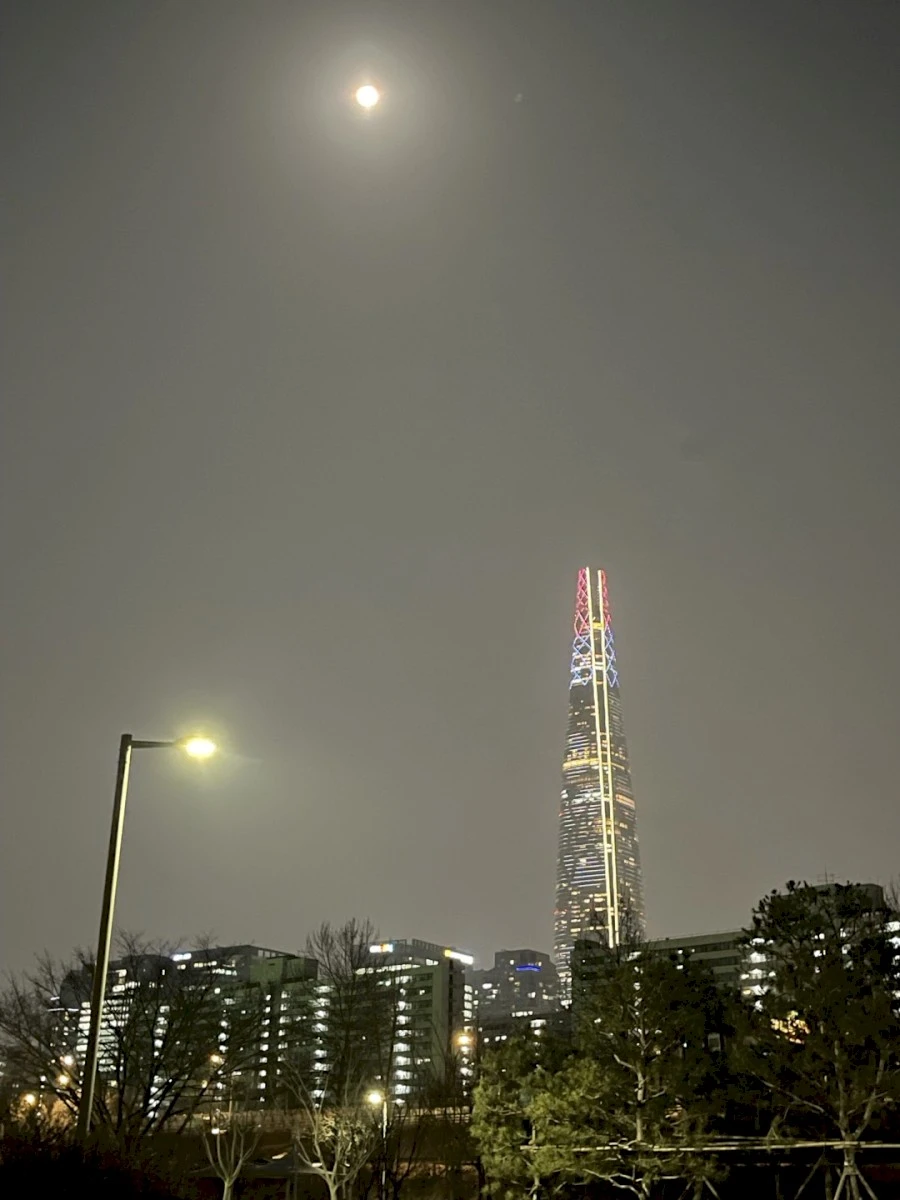 잠실고수부지에서부터는 100층이 넘는 롯데타워가 매우 크게 보이기 시작했다.