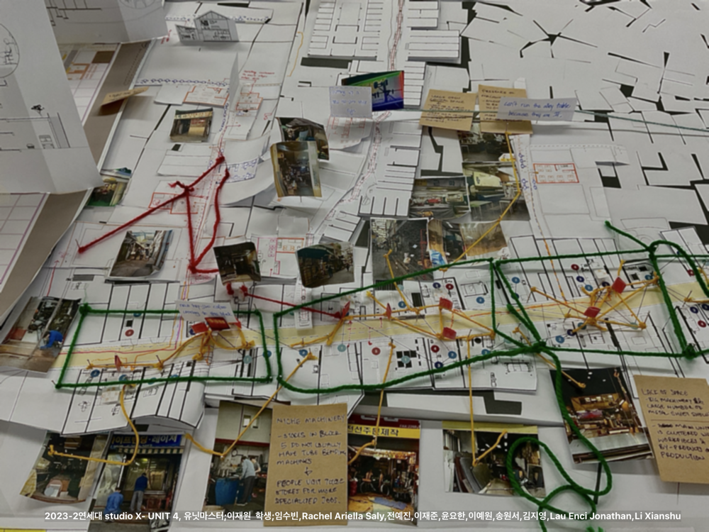 2023년 2학기부터 3번의 학기 동안 연세대학교 studio-X의 UNIT 2에서 학생들과 함께 을지로를 대상으로 연구하고 설계 프로젝트를 진행하기로 계획을 세웠습니다. 여러 곳이 재개발되고, 2 구역이 사라졌지만, 18개월 동안 꾸준히 이곳의 가치를 기록하고, 재발견하고, 다른 방식의 비전을 제기하는 것은 지금만 할 수 있는 일이라고 생각했습니다. 한 학기 동안 산림동을 중심으로 현재의 가치를 분석하고, 대안을 제시하면서 다음과 같은 생각을 하게 되었습니다. 역시 을지로는 한 번에 알아보기 힘든 도시이다. 그래서 보면 볼수록 새로운 공간과 시스템이 보이고, 알아채는 장소라고 생각했습니다. 이것은 한병철 철학자가 말한 포르노와 같이 투명하게 적나라하게 보여주는 공간과 다른 잃어버린 ‘에로스의 공간’과 같았습니다. 이 공간과 시간의 적층을 뚫고 연결하는 것은 생산과 삶을 위한 근접한 범위의 네트워크였습니다. 조선시대 도시구조를 기반으로 일제강점기와 1970년대의 고도성장기에 구획되고 만들어진 근대건축물이 삶과 함께 변형하여 자리 잡은 장소로 서울에서 또는 세계적으로 보기 힘든 공간이라고 생각합니다.