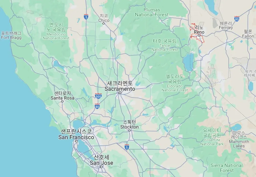 LA에서 5번 국도를 따라 북쪽으로 주행하면 스톡턴을 경유하여 새크라멘토에 도착하는데, 여기에서 동서방향으로 찢어지는 80번 국도를 타면 타호 국립공원을 경유하여 캘리포니아와 네바다주 끝머리 경계에 자리한 소도시 리노(Reno)에 다다른다. 마치 서부영화인 마카로니 웨스턴에 등장할 만큼이나 황량한 소도시 Reno는 도회지가 주는 활기찬 인상과는 판이하게 건조하며, 낮시간에는 길거리를 배회하는 고양이나 쥐 한 마리 보기 힘들 만큼 썰렁하다. 이 도시는 미국 내에서 이혼 산업이 가장 발전한 도시로, 아름답게 찢어지기를 원하는 부부들이 이곳을 찾는 경우가 많다. Reno는 네바다주 귀퉁이에 위치이기에 이곳의 이혼 법률은 다른 주에 비해 상대적으로 절차가 간단하고 더구나 신속하기까지 하다. 네바다주 정부는 이혼을 원하는 부부가 현지에 거주하지 않아도 이혼을 신청할 수 있도록 허용하고 있기에 많은 부부들이 Reno를 이혼의 도시로 선택하는 이유 중 하나이다.