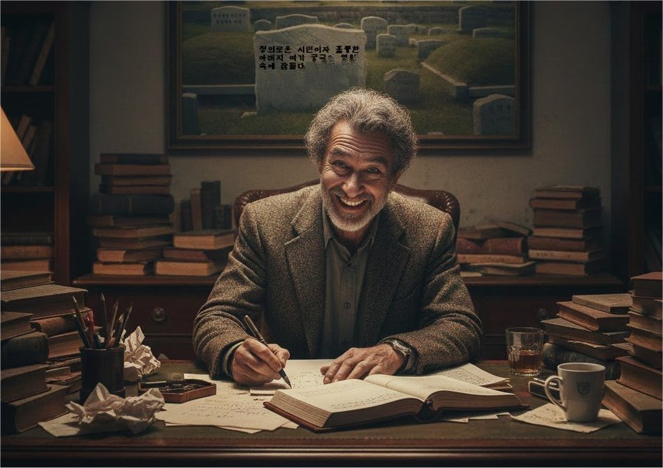 박 교수는 거의 반평생 철학을 연구하며 살았다. 그는 퇴임 후에도 역사의 냉소적 그림자에서 벗어나지 못했다. 그는 평생을 바쳐 기록된 거의 모든 역사가 '승자의 서사'이며, 정치와 권력자의 횡포를 정당화하기 위한 거대한 허위의 탑이라고 믿었다. 그는 흔히 말하는 염세론자는 아니었건만, 노벨 문학상 따위의 문학작품을 분석하여 나름의 철학을 피력 하였는데, 그 작품들이 인류에 미친 선한 영향력을 배제한다면 실제로는 역사적 거짓말을 가장 아름답고 설득력 있게 포장하는 도구였다고 냉소했다. 그리하여 문학상으로 치장된 명예를 ‘그럴듯한 거짓말을 가장 멋들어지게 잘하는 자에게 주는 명예’일 뿐이라는 게 그의 사변적(思辨的) 지론이었다.