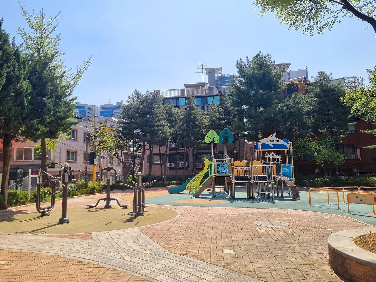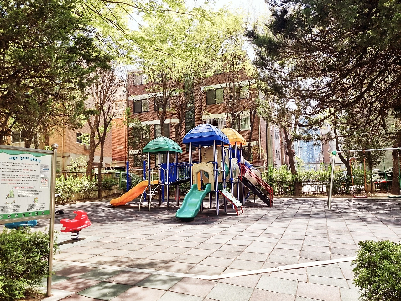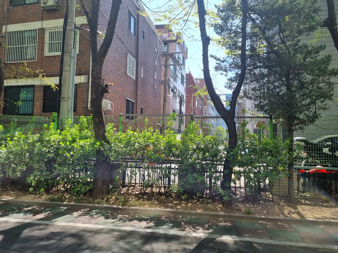 당시 아파트 사는 아이들은 놀이터 입구로 다녔지만 주택가에서 온 아이들은 저 울타리를 넘어 다녔었다. (원래는 아래 사진에 있는 검은 울타리 밖에 없어서 주택가에서 자유롭게 넘어 다녔는데 이제는 높은 울타리가 쳐져 있어 뭔가 씁쓸하다.)