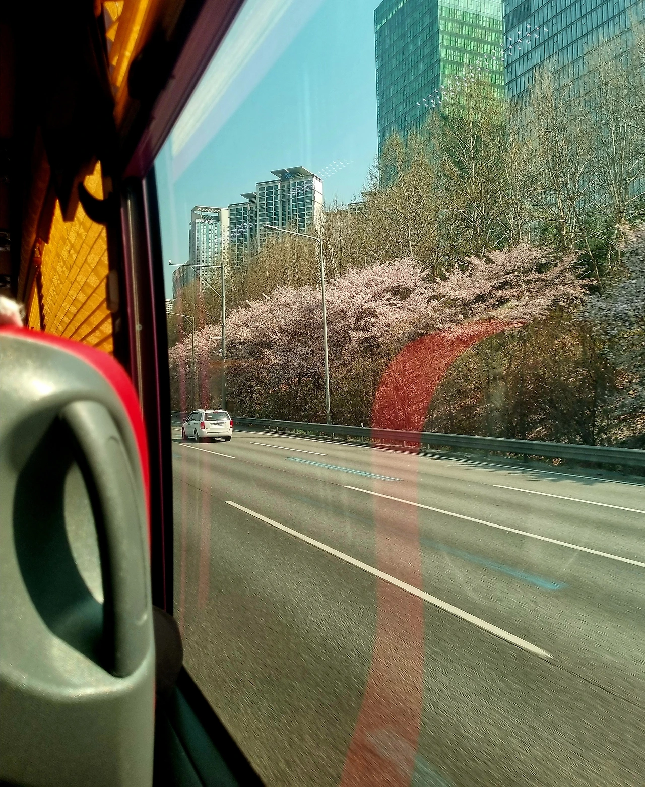 오랜만에 타는 버스에 차창밖으로 보이는 벚꽃이 흐드러지게 펴서 더욱 설레는 여행길이었다. 예전 초등학교 때 등굣길처럼 가는 길 내내 친구와의 수다가 끊이질 않았다. (대부분의 주제가 애들 걱정이었지만 그또한 좋았다.)