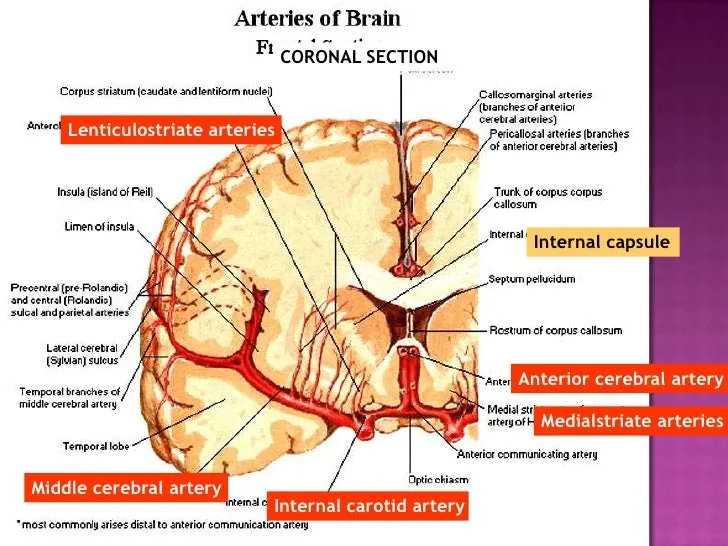 내낭 부위는 대뇌 피질에서 기원하는 여러 신경다발이 지나가는 부위인데 여기에 산소를 공급하는 것이 외측선조체동맥이다.