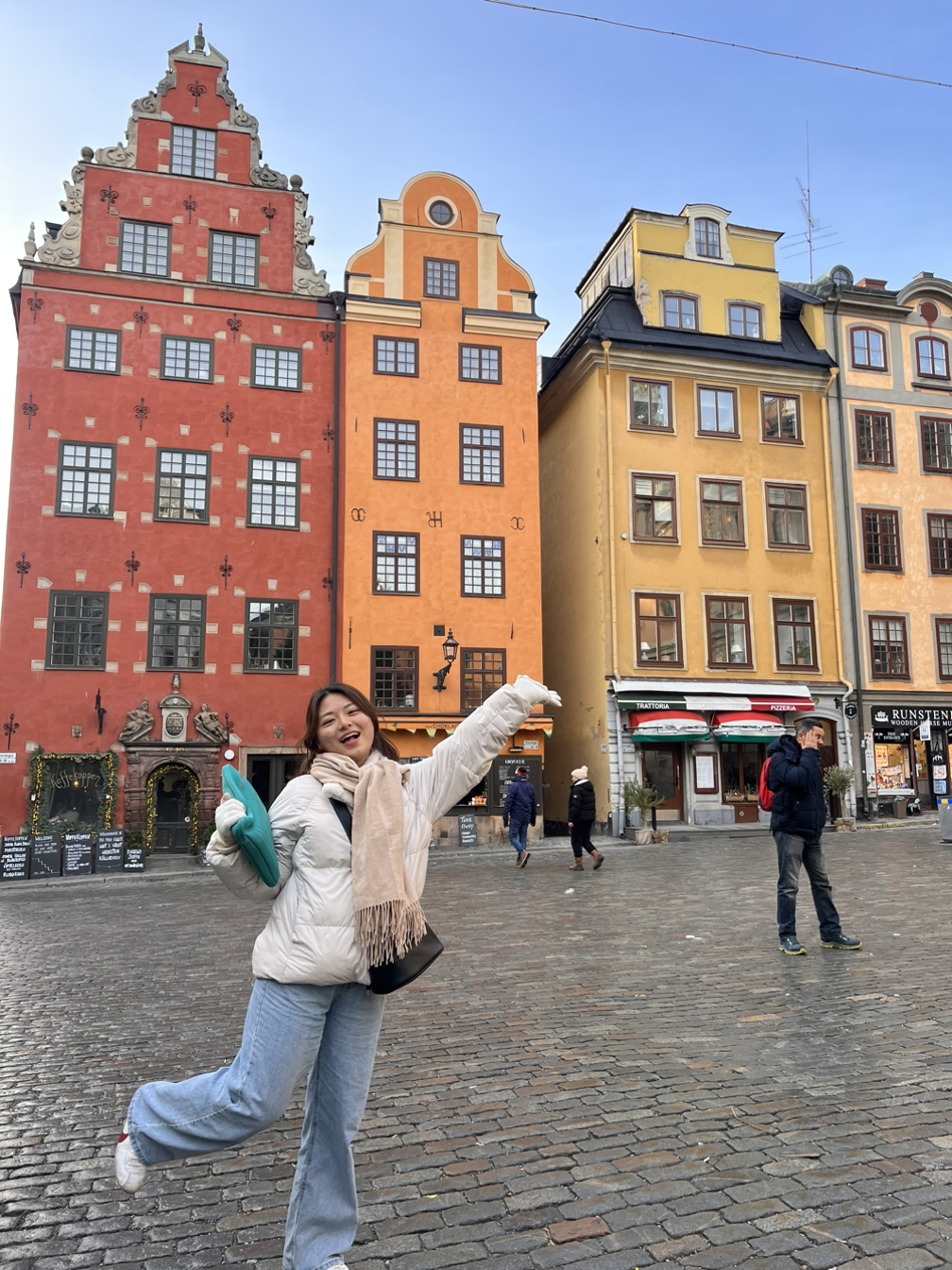 둘 쨋 날, 또 한 번 감라스탄에 가보았다. 사실 갈 곳이 그리 많지 않은 이유가 컸다. 좀 더 열정적으로 제대로 알아보고 여행을 할 걸이라는 후회는 남아있다. 하지만 이 사진을 찍어준 사람과 친해져서 다음 날에도 또 봤다는 사실! 누구에게 사진을 부탁하고싶어서 감라스탄 앞에서 두리번 거리던 찰나, 내 앞에 있던 동양+서양인 조합이 신선해서 사진을 물어봤는데 그 계기로 친해지게 됐다. 둘은 호스텔에서 어제 알게된 사이고 오늘 같이 돌아다닌다고 한다. 그래서 나도 같이 조인 했다.