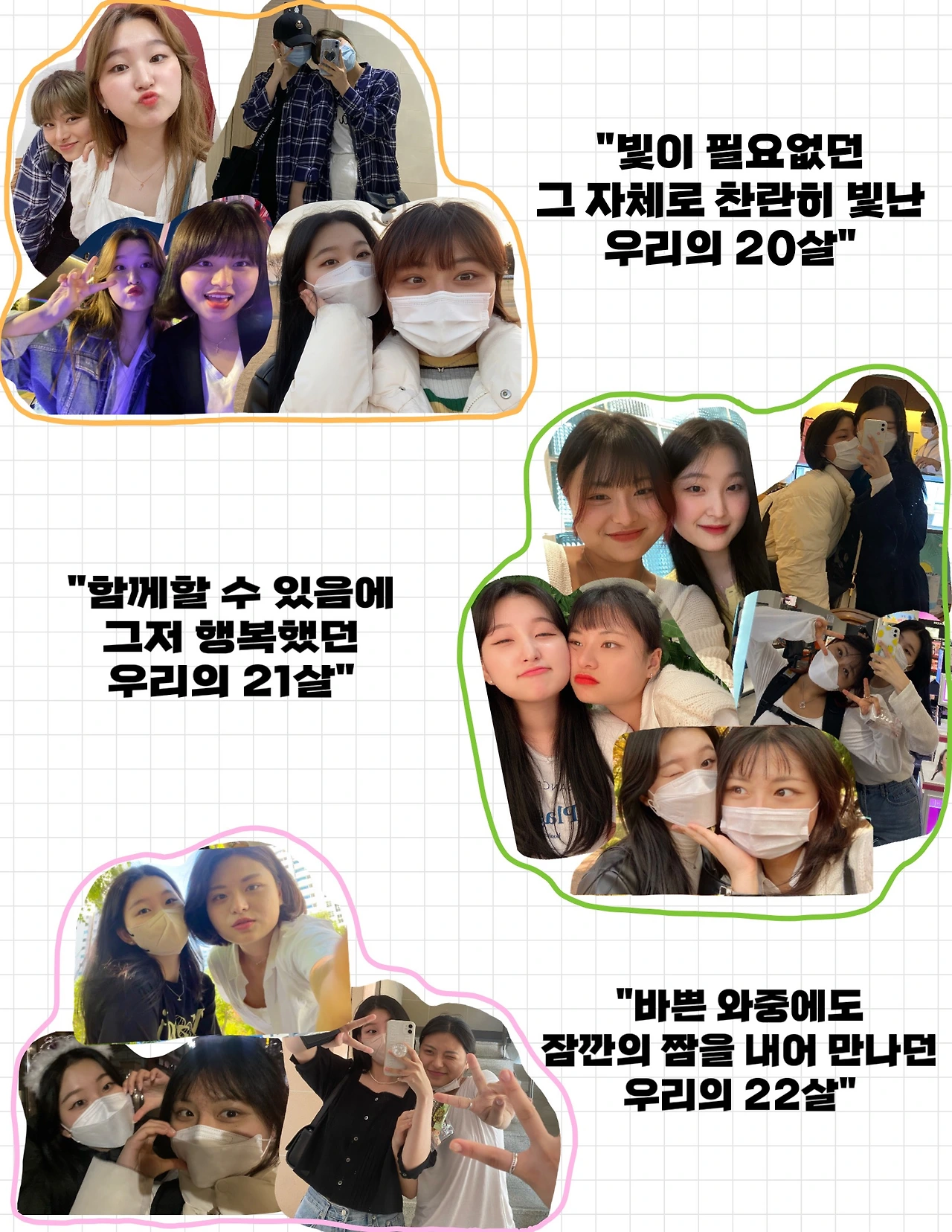 생일 날 받은 연락들 중 가장 기억에 남는 메세지들. 난 늘 혼자라고 생각했지만 생각보다 나를 소중하게 생각해주는 사람이 많다는 사실을 8개월이 지난 지금 새삼스레 느껴본다. 다들 평소에는 각자 삶을 살아가기 바쁘지만, 이렇게 특별한 날에는 서로를 잊지 않는 사이가 오래 될 수 있도록 나도 내 소중한 사람들을 더 신경 써야겠다.