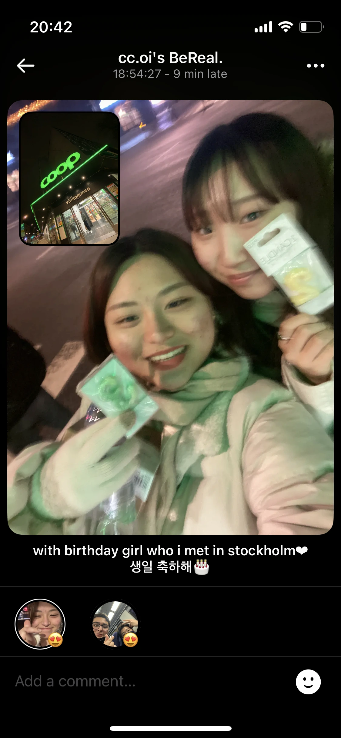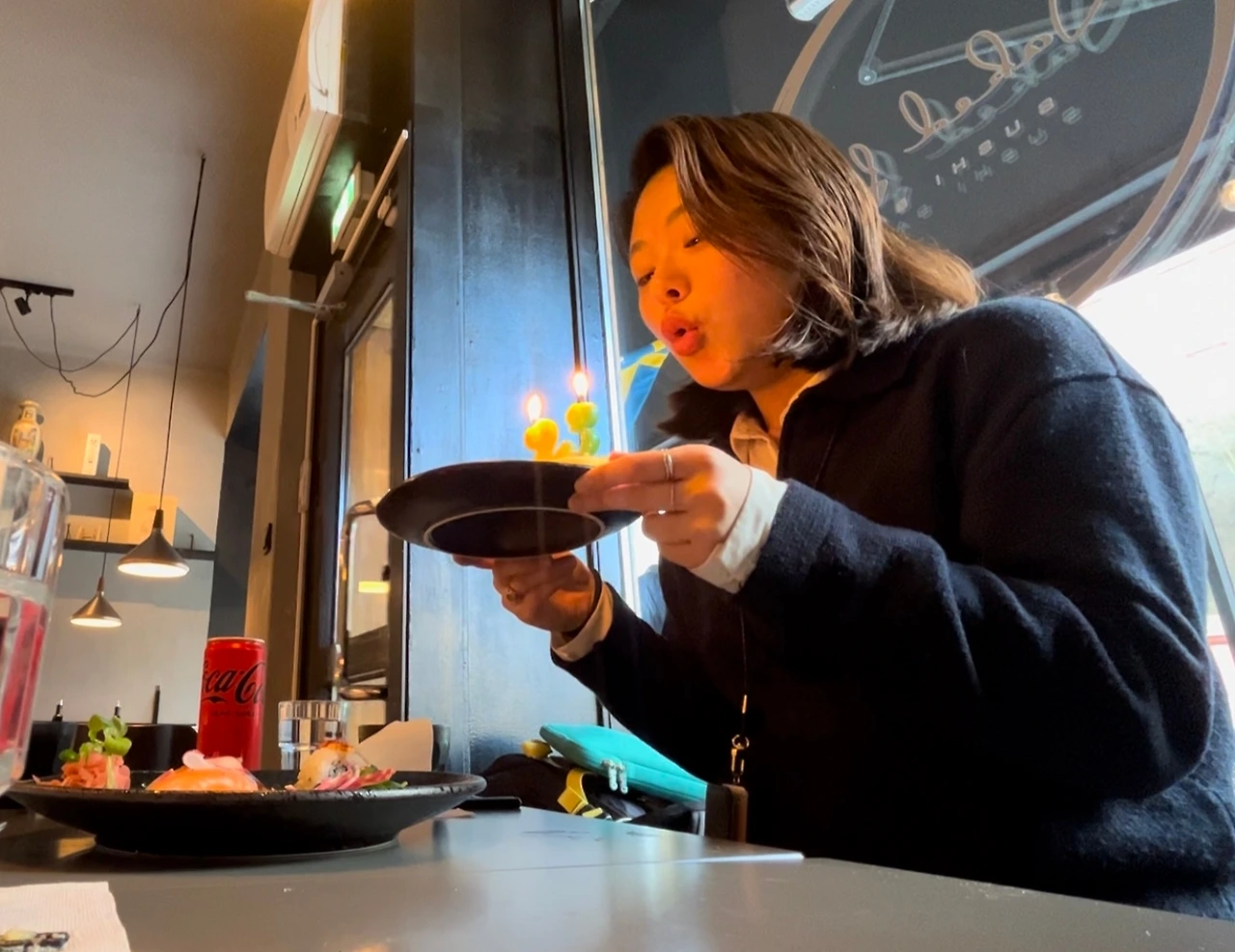 한 명은 폴란드 친구, 한 명은 일본 친구였다. 학교보다 여행지에서 만나면 더 친해지고 나도 말이 많아지는 거 같다. 폴란드 친구는 떠나는 날이어서 먼저 가고, 일본 친구 코토미랑 스톡홀름 밤을 걷고, 카페 가서 수다도 떨고 그랬다. 그리고 다음 날이 내 생일이라 혼자 스시 먹으러 갈 건데 같이 갈래? 라는 물음에 흔쾌히 같이 가준 코토미. ( 폴란드 친구는 3월에 내가 폴란드 갔을 때 만났었다. 재밌죠? )