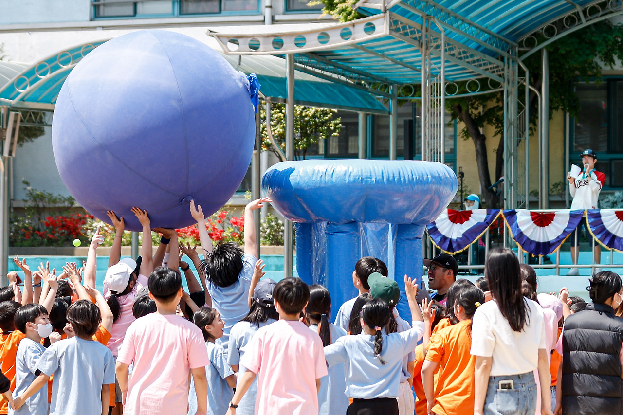 서울의 한 초등학교 운동회에서 여러 학년 학생들이 함께하는 풍선 올리기 경기를 하고 있다. 학년도, 꿈도 달라도 지금 이 순간은 힘을 합쳐 이기겠다는 한 가지 생각 만을 하고 있을 것이다.