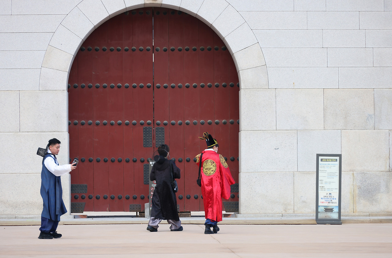 한복을 입으면 고궁입장이 무료다. 매주 화요일, 경복궁이 휴궁이지만 이날 한복을 대여해 궁을 찾은 외국인 관광객들이 휴궁 안내문을 보며 난감해하고 있다. 대여만 하면 그만인 상술이 아니라 휴궁일때는 친절하게 알려주는 배려도 필요하다.