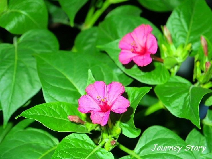 예전 일인데, 늦은 오후에 꽃이 피면 어머니들을 날 보고 "벌써 시간이 이렇게 되었네" 하고 서둘러 저녁밥을 지었지. 당시에는 시계가 드물었으니 밥 할 때를 알려주는 날 얼마나 반갑게 보던지. 게다가 내 속씨앗으로 흰 가루를 내어 분 화장을 했지. 이래저래 우울할 틈도 없이 인기 만점이었다고. 지금은 1분 1초가 틀림없는 시계와 핸드폰을 손에서 놓지 않고 있고 효과가 다양한 화장품이 있어서 사라져 가는 느린 소통이었어. 그런데 그거 알아? 어머니는 떨어져 있어도 서로 안에 있다는 믿음을 씨앗에 담아 시집가는 딸에게 전해주셨어. 그 마음을 받아들여 주변을 바라보면 결국 우린 한 그릇 안에 있는 거야.
