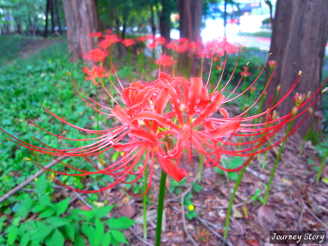 "안녕 난 꽃무릇이야. 알뿌리가 마늘을 닮아서 석산(돌마늘)이라도 불러"