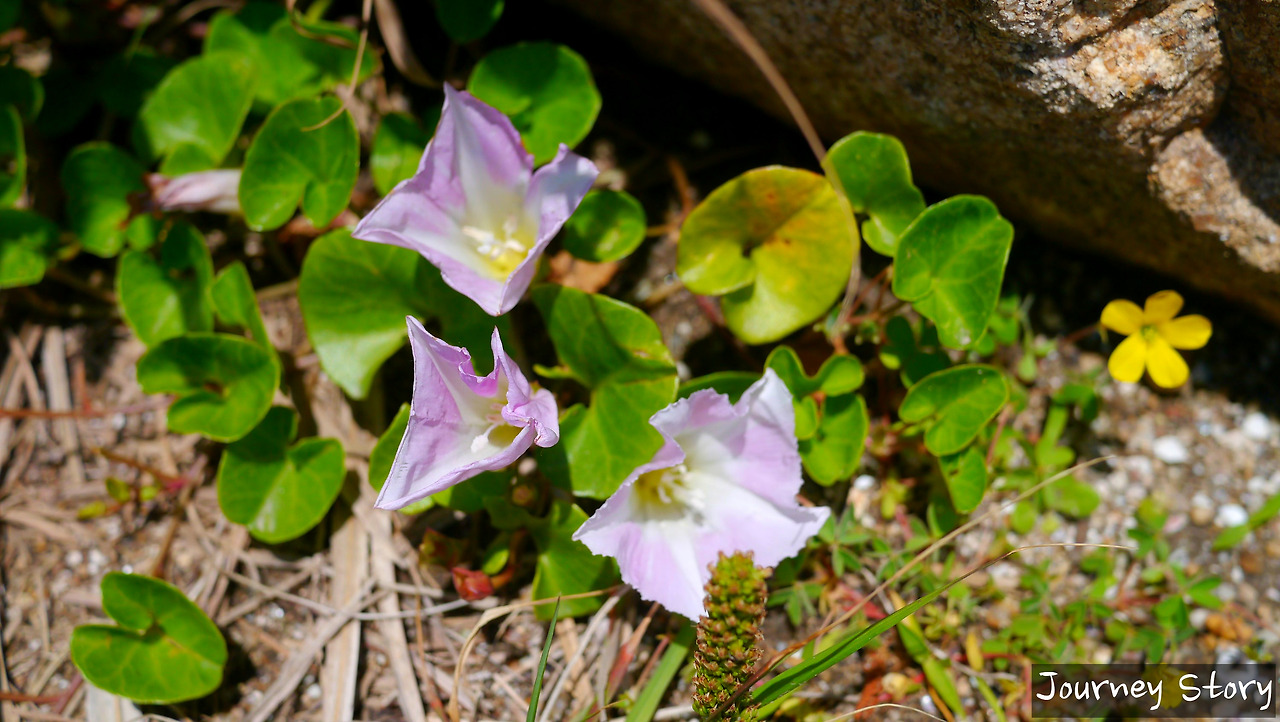 내가 누구냐고? 난, 들판에서 흔하게 볼 수 있는 수수한 메꽃이야! 사람들이 날 나팔꽃으로 잘못 부르곤 해. 꽃만 봐서는 누가 봐도 비슷하니 애써 모른 척 넘어가긴 했지만, 따뜻한 인도에서 건너와 겨우 한해를 버티는 나팔꽃만 예뻐하고 화초로 가꾸는 것은 아주 못마땅해. 겐 바람둥이처럼 새벽에 몰래 파랑, 빨강, 하양꽃을 피운다고. 난, 누가 돌보지 않아도 겨울 견뎌내고 뜨거운 낮에 오직 분홍 꽃만을 피운다고. 조심성 없이 잎부터 펼쳐놓고 보는 나팔꽃과 달리 땅속뿌리줄기에서 나온 덩굴줄기가 무엇이든 칭칭 감고 올라가서 햇볕을 보고 천천히 잎을 펼치지. 아주 작은 힘만 써서 줄기는 연약하고 동물이 잎을 먹지 못하게 쓴맛도 만들어내지 않았어. 꽃을 피워 씨앗을 만드는데 연연하지 않는 대신 뿌리에 힘을 모아 땅속 터전을 만들었지. 그것이 내가 추운 겨울을 견딜 수 있었던 힘이야.