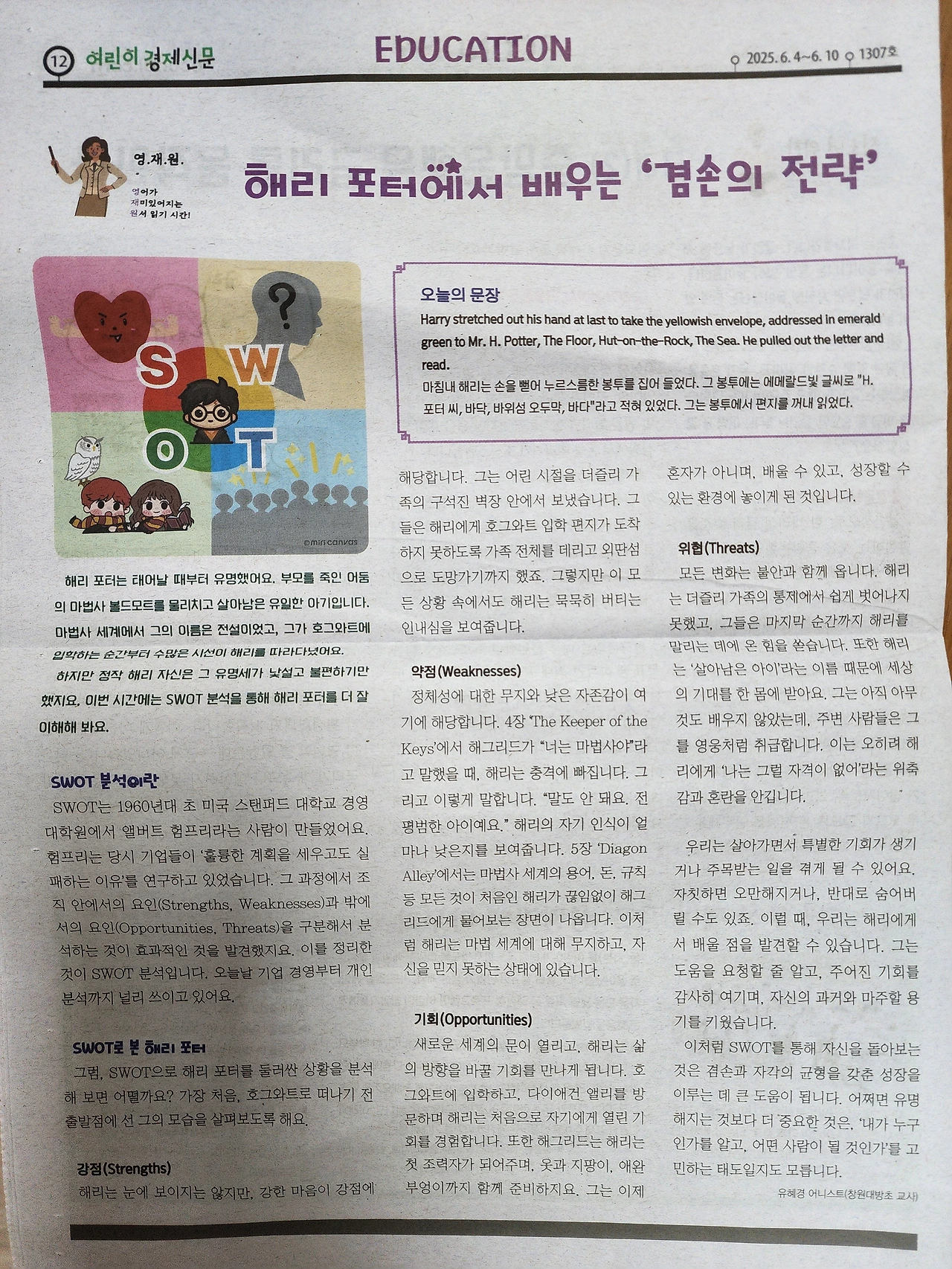 지난 2월부터 한 달에 두 편씩 해리포터와 영어교육 그리고 영재교육의 창의성 사고기법을 적용한 칼럼을 기고중입니다.