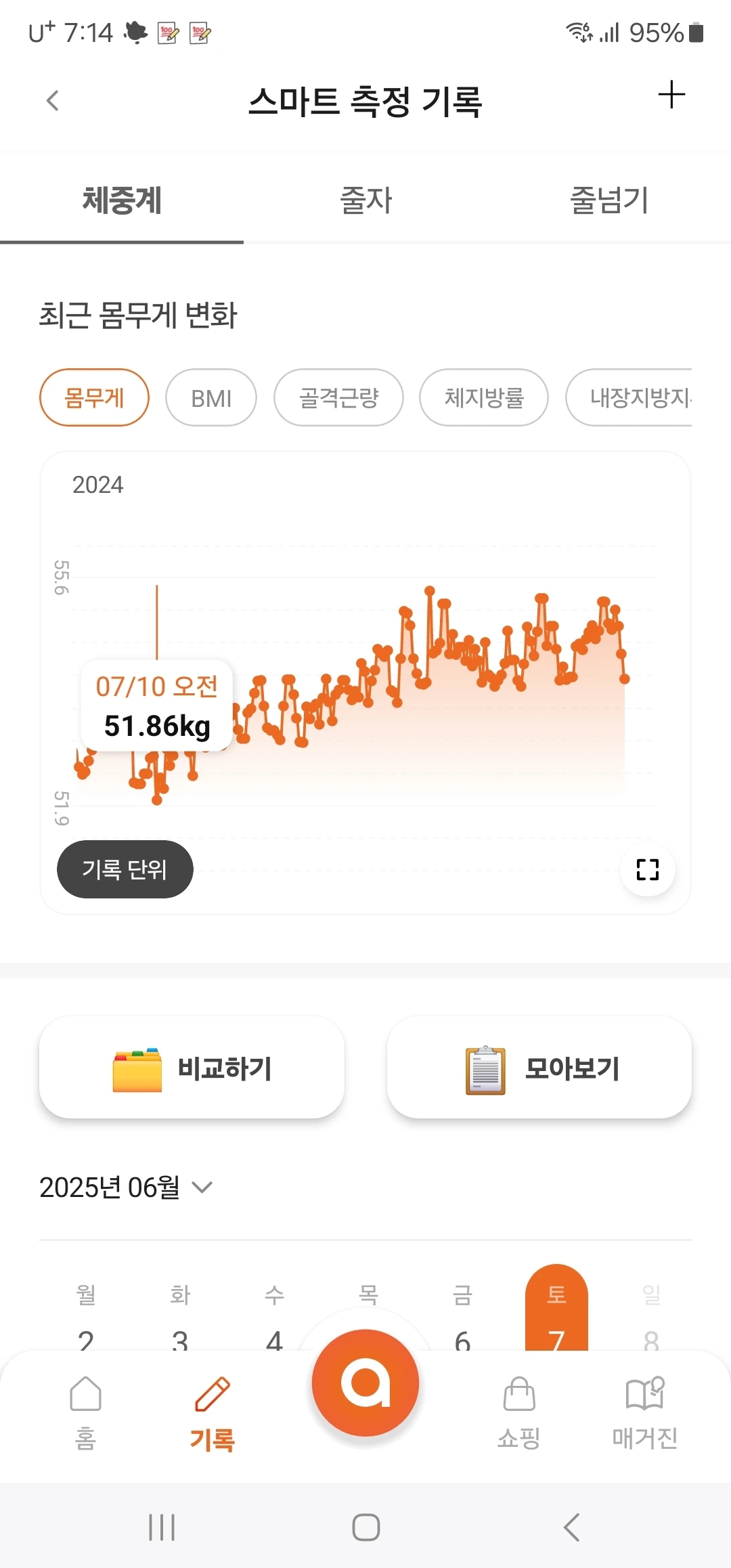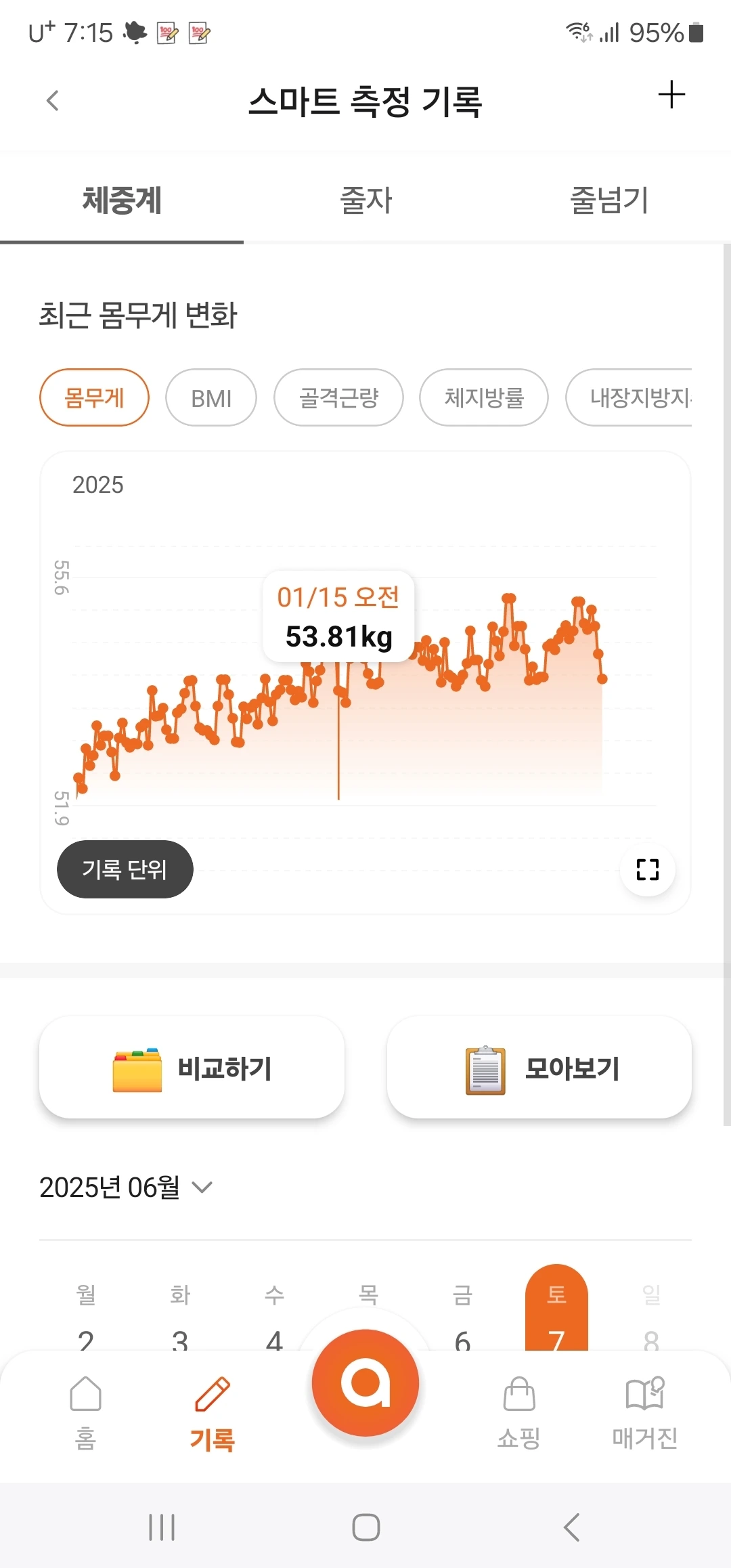 체중이 등산하듯 오르고만 있었는데