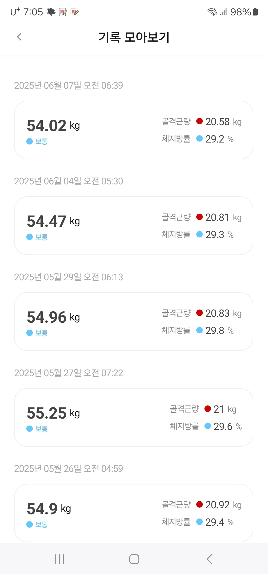 채중이 줄어들었다. 야호.